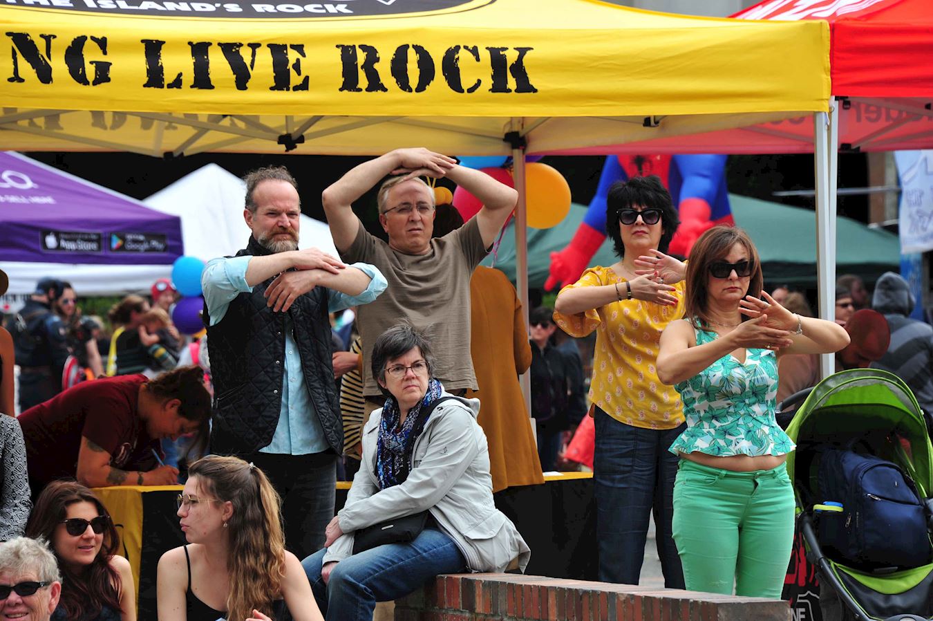 游行结束后,腰鼓队和法轮功功法演示队应邀在维多利亚市府广场做表演,很多民众现场学炼法轮功功法动作。