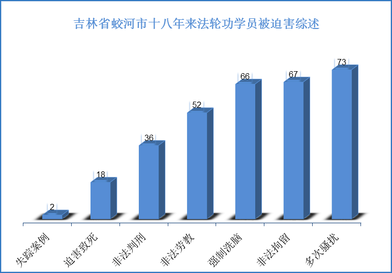十九年来,多少法轮功学员被非法判刑、劳教、被迫害的致死致残,更甚者被活摘器官,有的有家不能归,妻离子散,家破人亡。只县级市的蛟河,一桩桩,一件件的迫害案例触目惊心。