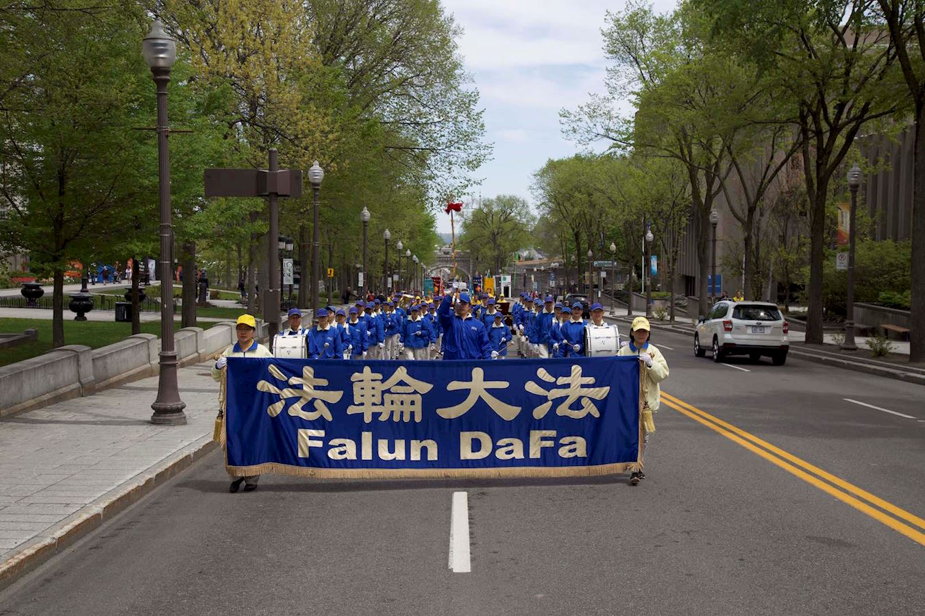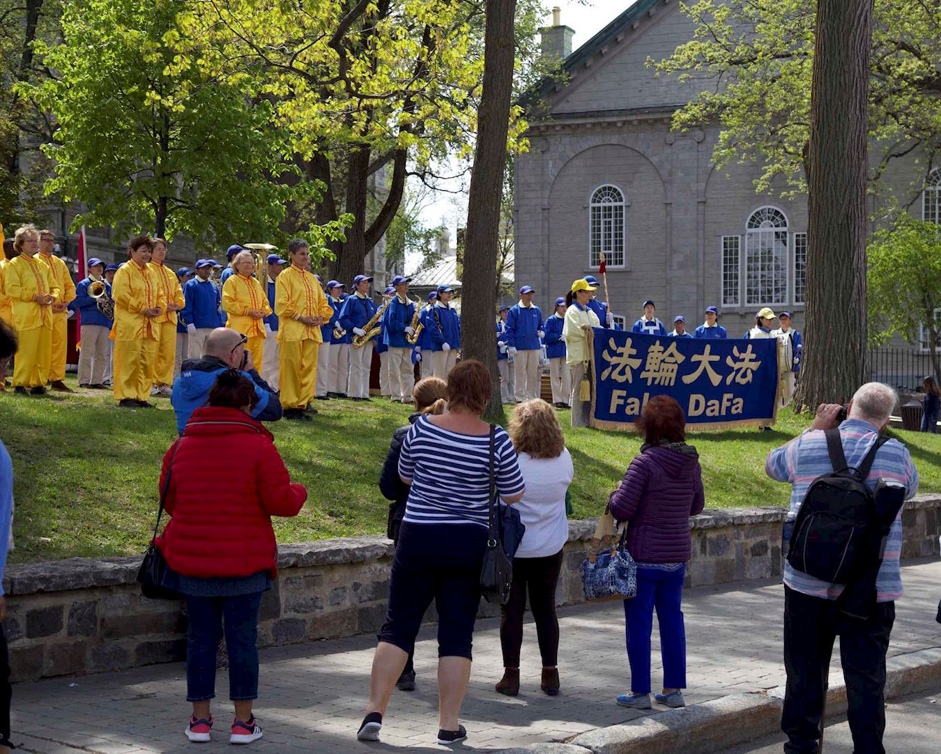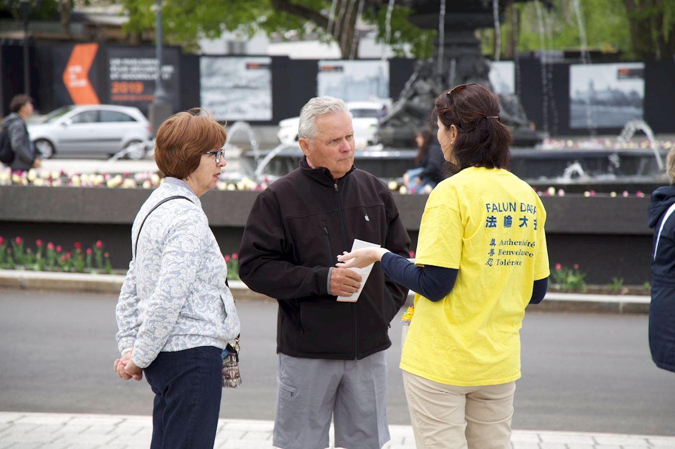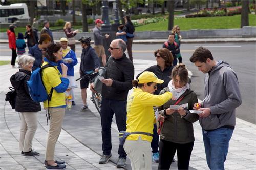 ![]() 图1:二零一八年五月二十六日,加拿大魁北克省学员在魁北克市庆祝法轮大法弘传二十六周年,向民众传递大法的美好 |