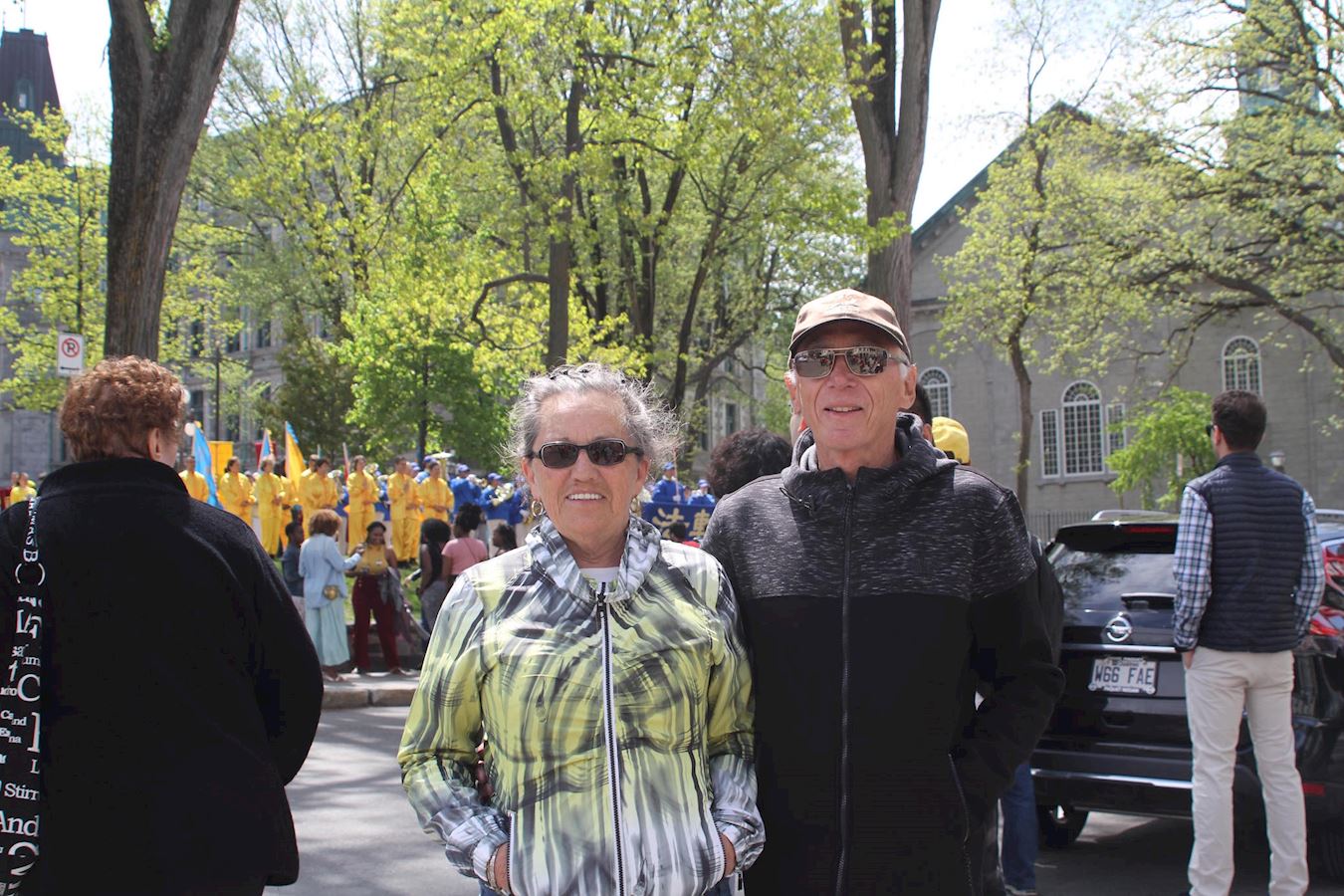 盖伊·默里西克(Guy Morisette)和太太在经过集会现场,被天国乐团的音乐所吸引,他们连声说:“很好听,很喜欢,演奏得真好。”接着他们询问法轮功是什么,和通常看到的太极有什么区别。在得知在中国因为炼功就会遭到迫害,盖伊表示:“那么这是个很坏的政府,在好的社会里,人有自由信仰的权利。”