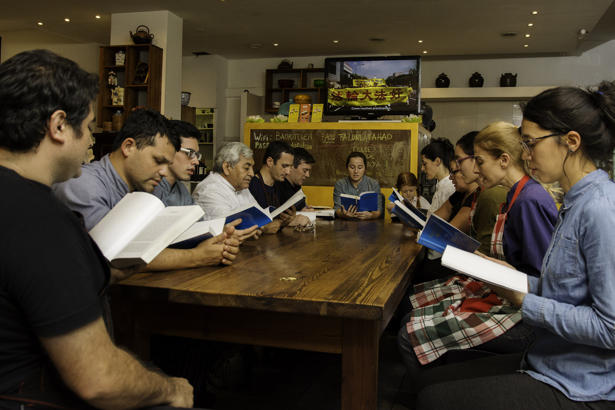 在我们餐馆里每天都有不同的故事。这天,餐馆里来了一个来自新疆的年轻女子和哥伦比亚的同事,她们二人负责替一家北京石油服务公司拓展在拉美的业务。她们对餐馆的饭菜非常满意,尤其是中国来的女士。哥伦比亚的女士表示,她的中国同事因为在我们餐馆终于找到了可口的中国菜,决定在布宜诺斯艾利斯留下来。她非常高兴,问了我许多问题。她说她会一直来餐馆吃饭。我想,如果我现在跟她讲法轮功,她可能就不再来了。但她一直不停的问我的背景。所以我终于说:“我是法轮功学员。实际上餐馆的所有员工都是法轮功学员。”她听后非常吃惊。她表示,不太了解法轮功,并表示她无法相信中共在迫害自己的人民。