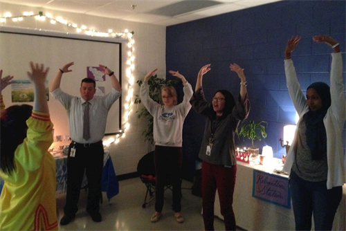 一位来自大陆的交换生和法轮功学员交谈了很久。他表示,非常敬佩法轮功有这样坚定的信念,这么多年坚持下来,而且很和平。