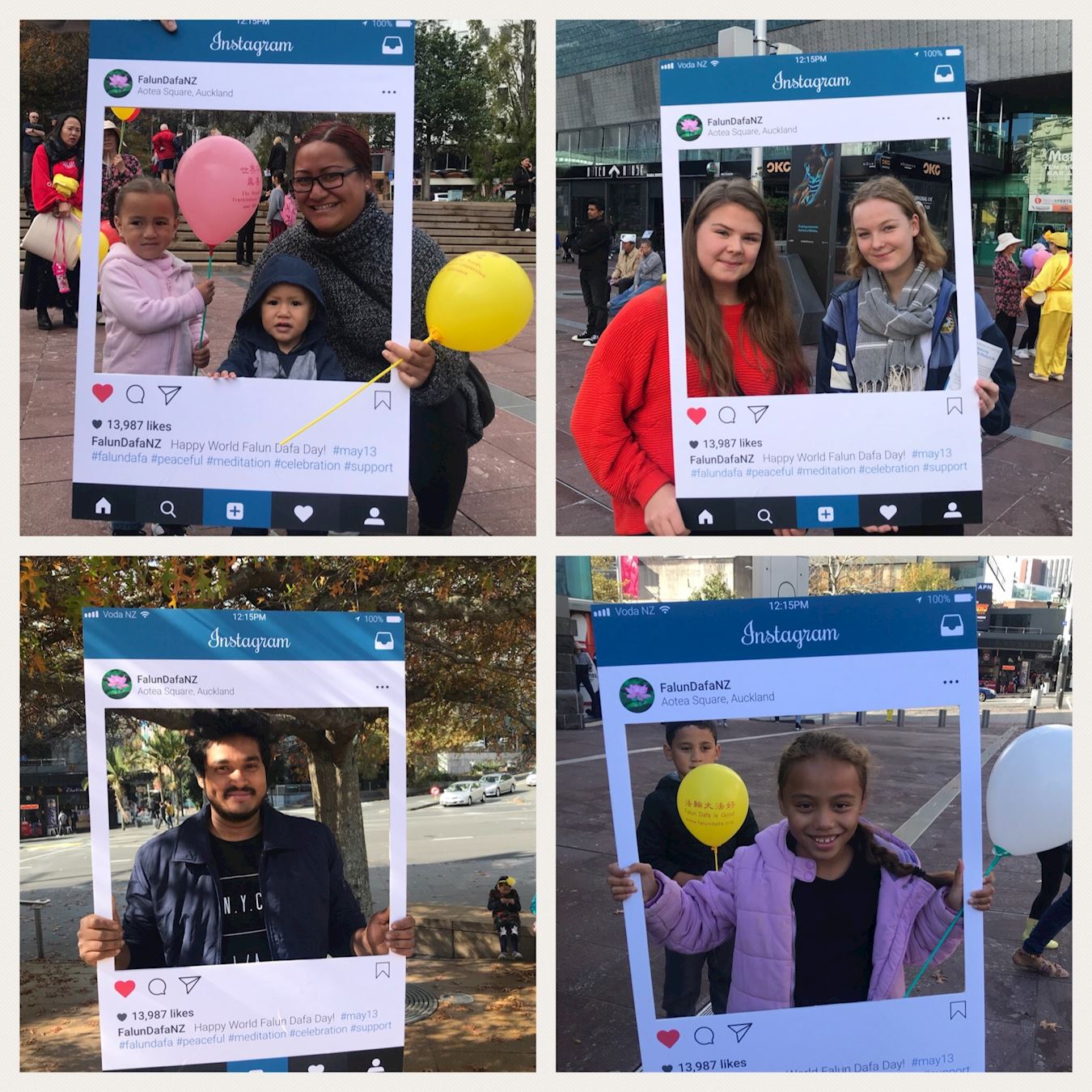 五月六日,雨后的奥克兰,空气分外清新,微风拂面,白云飘荡,新西兰法轮功学员聚集在AOTEA广场和来来往往的人们一起庆祝即将来临的“世界法轮大法日”。