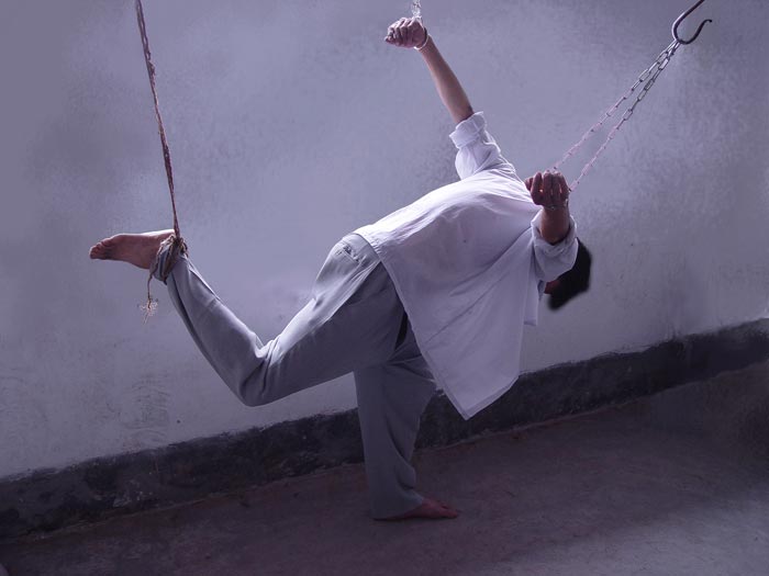 ![]() 中共监狱罚站示意图:“俯开飞机” |