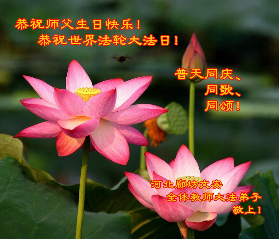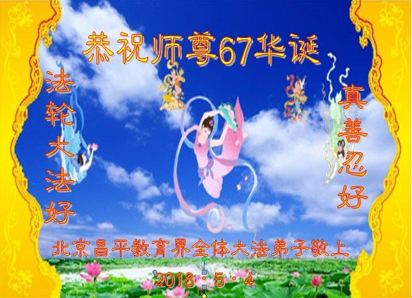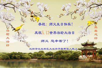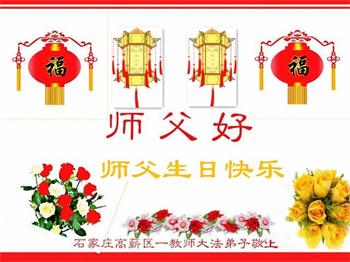 感谢李大师传大法,叫我们了解法轮大法真相!我们常年念法轮大法好,身体越健康。我们很幸运,感谢您不辞劳苦传大法给我们带来美好、给众生带来希望,我们感谢您李大师!盼望您早日回国。祝李大师生日快乐!叩拜、叩拜、再叩拜!合十