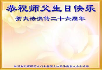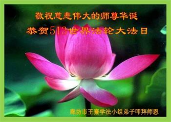 自1992年大法传出以来,中国大陆得法人数日益增多,人心向善,公园里、大街上到处可见修炼民众。1999年江氏流氓集团发动对法轮功的镇压,法轮功不但没有消失,反而洪传到世界各地,深受各国民众的喜爱。在此世界法轮大法日,恭祝师尊生日快乐!弟子将跟随师父正法的脚步,继续前行。
