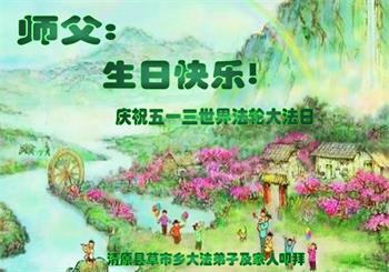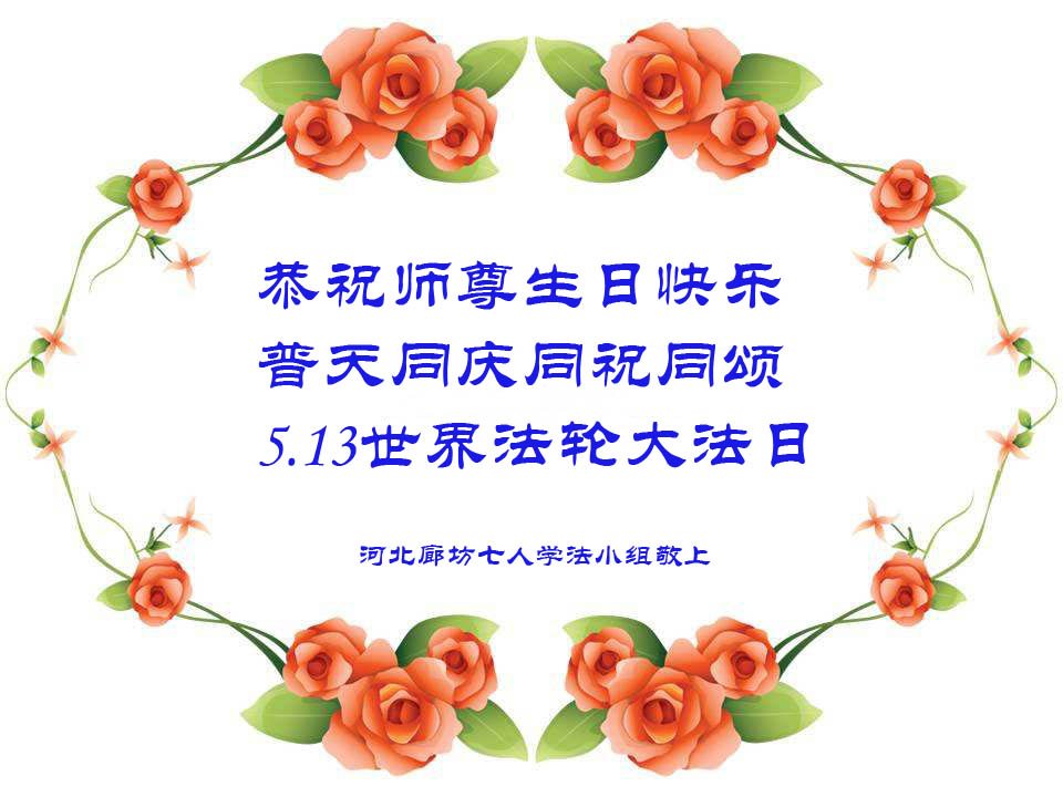 河北省定兴县农村一学法小组全体大法弟子恭祝师父生日快乐!