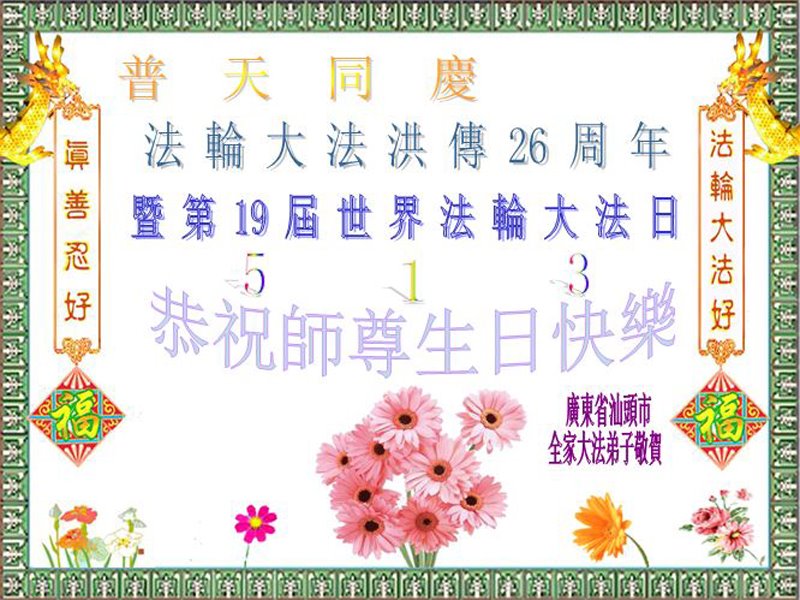 <英文版: http://en.d2s3ombhnov3zf.cloudfront.net/html/articles/2018/5/9/169688.html>明真相世人恭贺世界法轮大法日暨师尊华诞(19条)