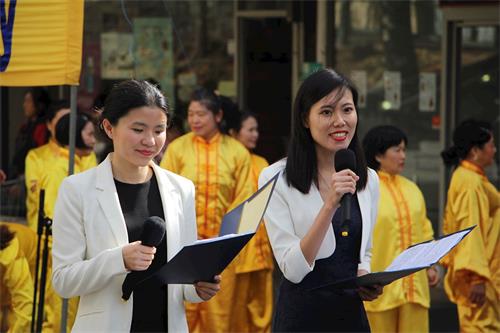 五月五日在博士山举行的庆典位于闹市,游人如织,许多观众驻足专注地观看法轮功学员带来的节目,纷纷举起手机拍照录像。在法轮功学员的展位上,很多民众询问学炼功法的方式和途径,表达对法轮功学员在中国受迫害的关注,以及对中共政权邪恶迫害的谴责。