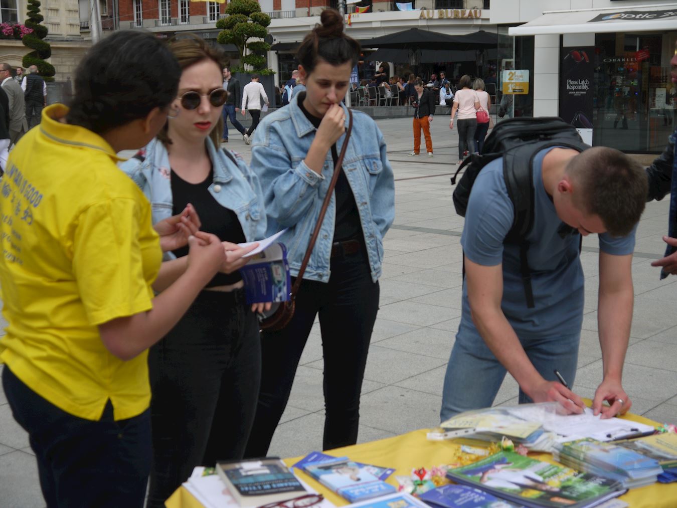来自英国的一组游人是英国劳动党成员,他们第一次听说法轮功和发生在中国的迫害,感到非常震惊。他们拿取了所有种类的资料,表示回国后尽可能地向他们周边的人传播法轮功真相。他们中的一位女士说:“今天在我的人生中将留下一个印记。”