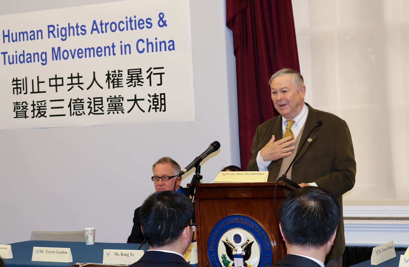 中国的退!党!潮引起了美国众议院资深议员达纳·罗拉巴克(Dana Rohrabacher)的关注。