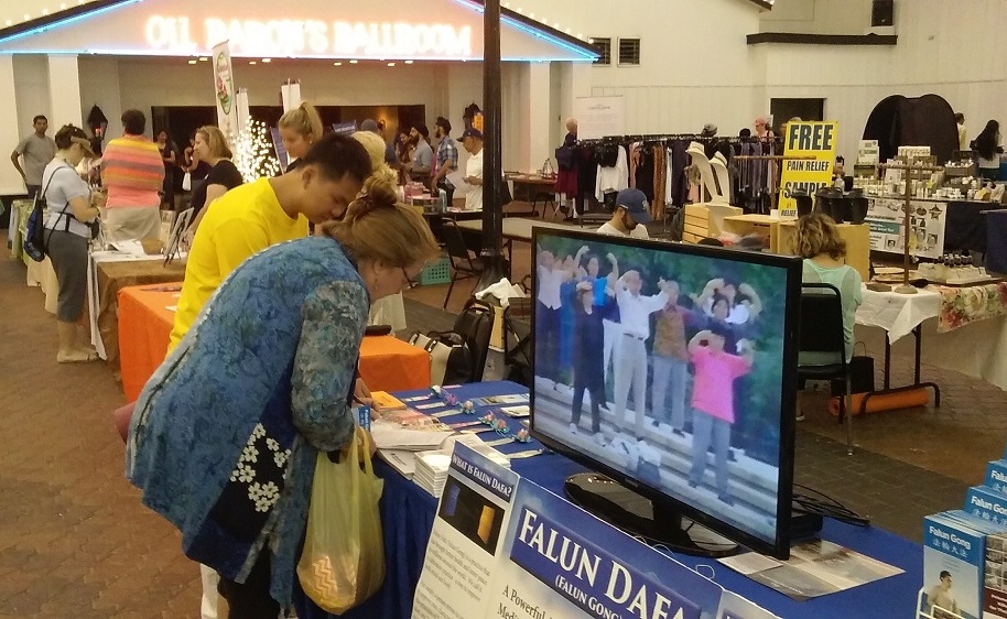 【明慧网二零一八年六月十九日】二零一八年六月十六日,美国达拉斯法轮功学员参加了在帕克尔市(City of Parker)举办的达拉斯瑜伽节(Dallas Yoga Fest)。他们向人们介绍法轮大法(又称法轮功),并在展位前演示功法,也向人们讲述在大陆发生的对法轮功学员的迫害,曝光了中共活摘法轮功学员器官的邪恶。