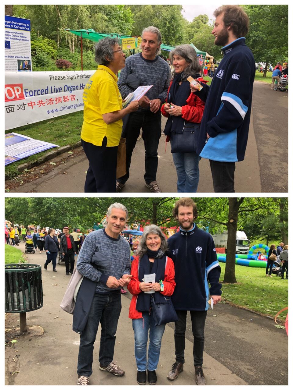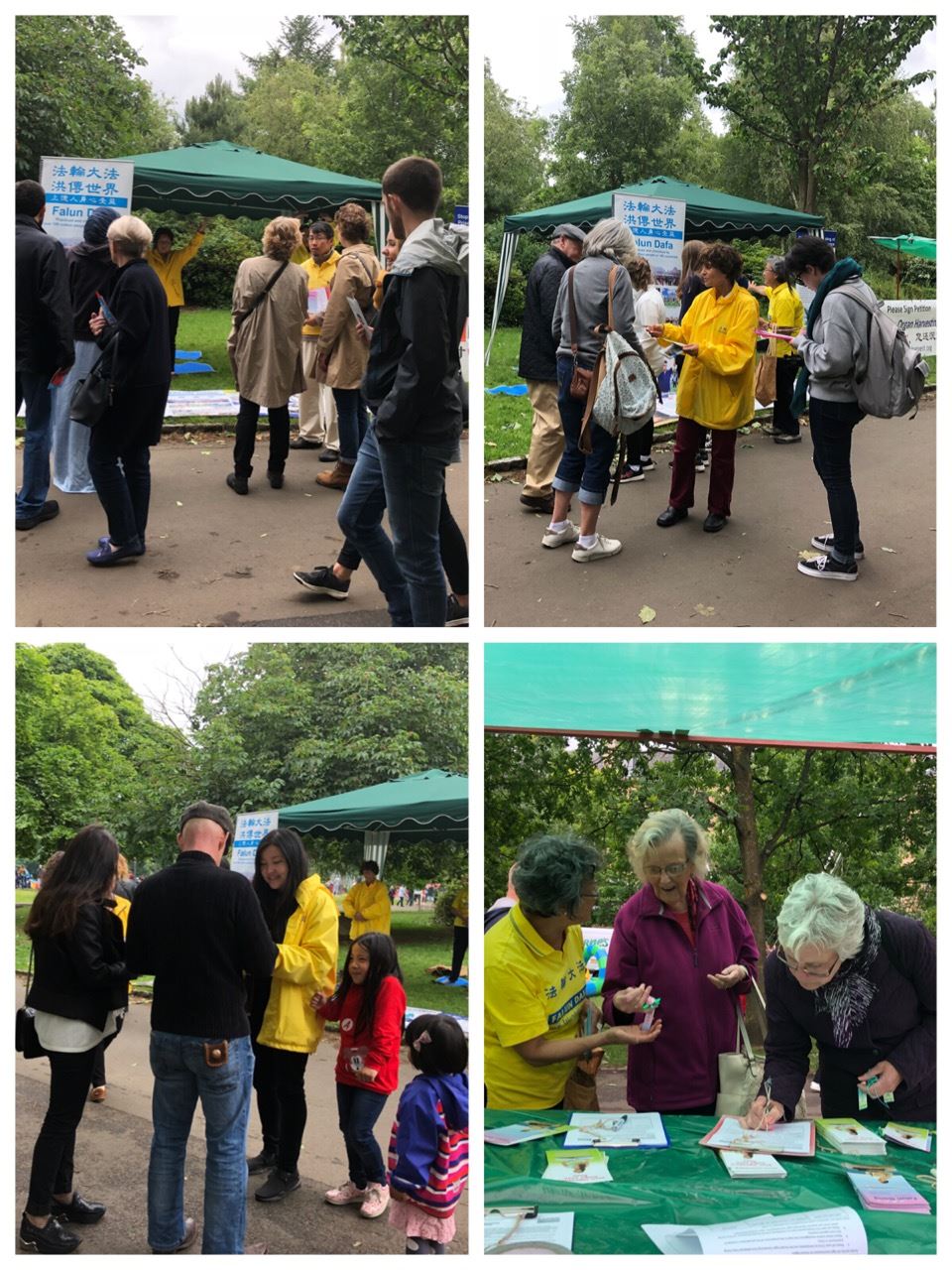 一位名为马克的苏格兰人表示:在此之前曾得到过法轮功学员给与的宣传册,并专门去youtube查找了法轮功相关视频,当他看到在中国发生的强摘器官的信息之后才懂得为何西方国际等待器官捐献需要几年甚至更久,但在中国只需要短短十几天甚至更短时间。他表示自己会尽快和当地法轮功联络人联系修炼法轮功。