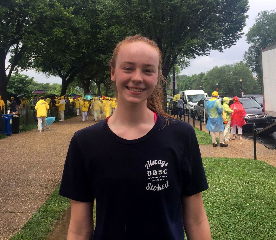 十七岁的中学生格蕾丝(Grace)跑步经过这里,她说曾经在学校学到过有关人权的内容,知道在很多地方都有人受到迫害。她认为,人权是每个人都拥有的权利,民众应该支持“为中国人权抗争的人们”。