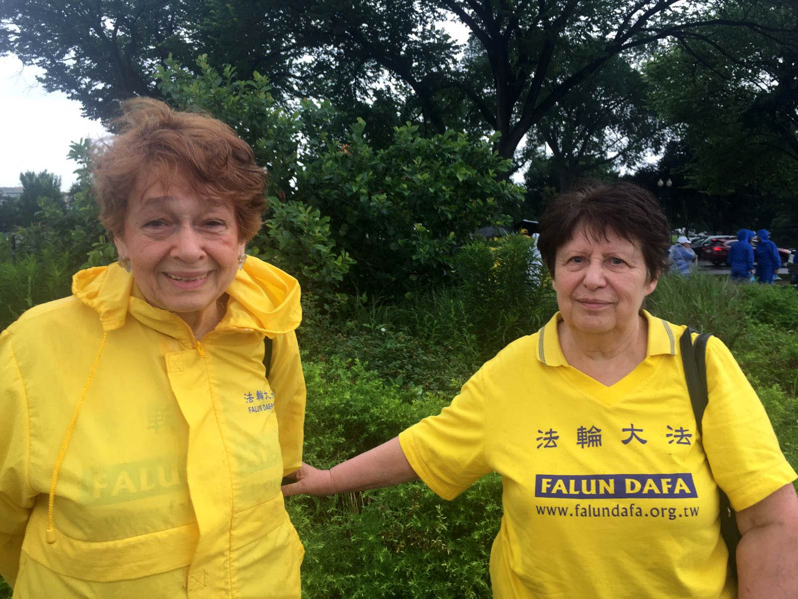 ![]() 六十九岁的泽玛(左)和七十岁的瓦伦提娜亲身体验了法轮功的健身奇效。 |