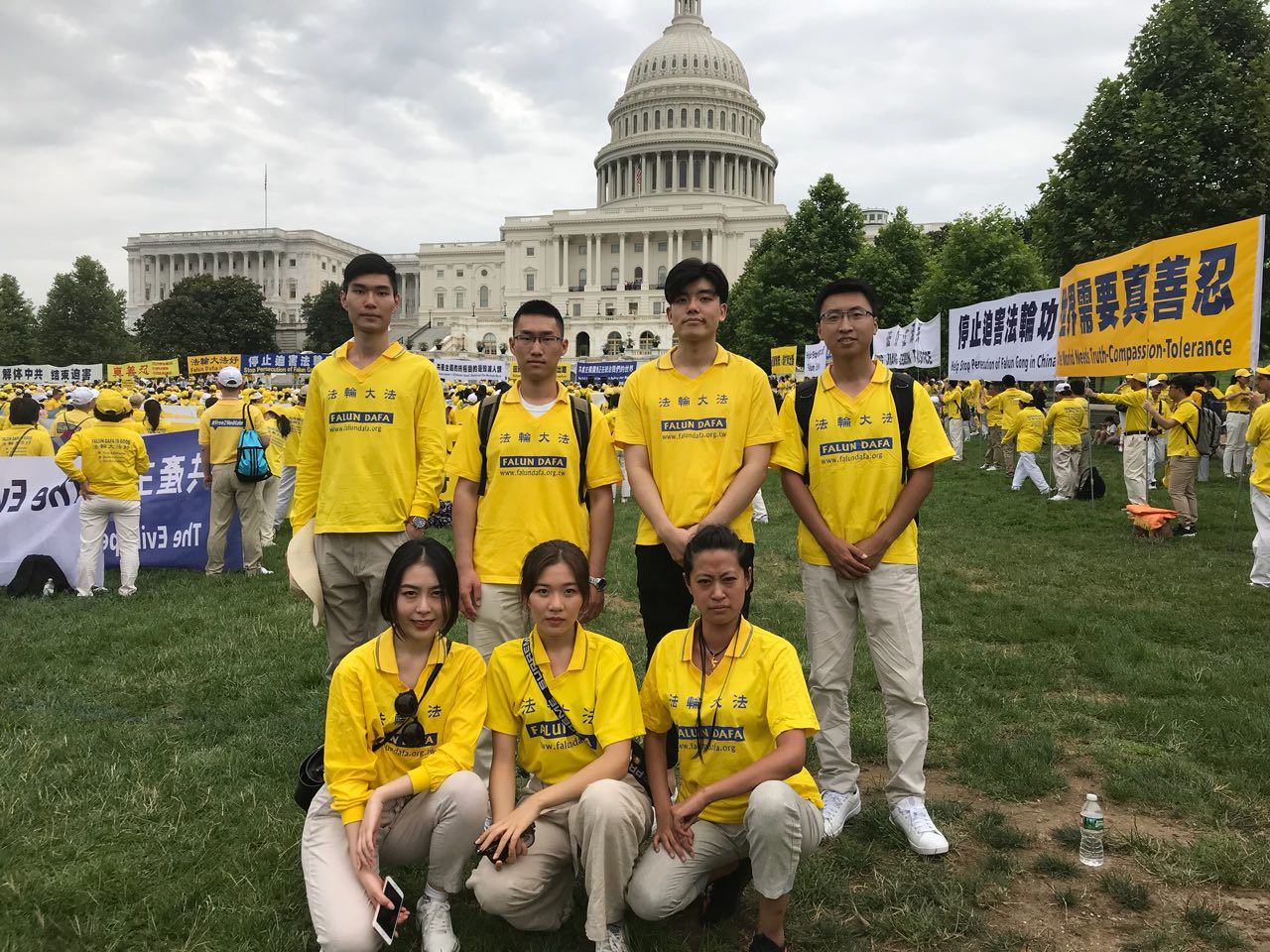 ![]() 图3:前来参加游行的法轮功学员中不乏年轻大法弟子,林雨杉(后排左二)、佳宁(后排右二)、栾军政(后排右一)和刘禹辰(前排左一)、冯嘉懿(前排中)、赵一炼(前排右一)。 |