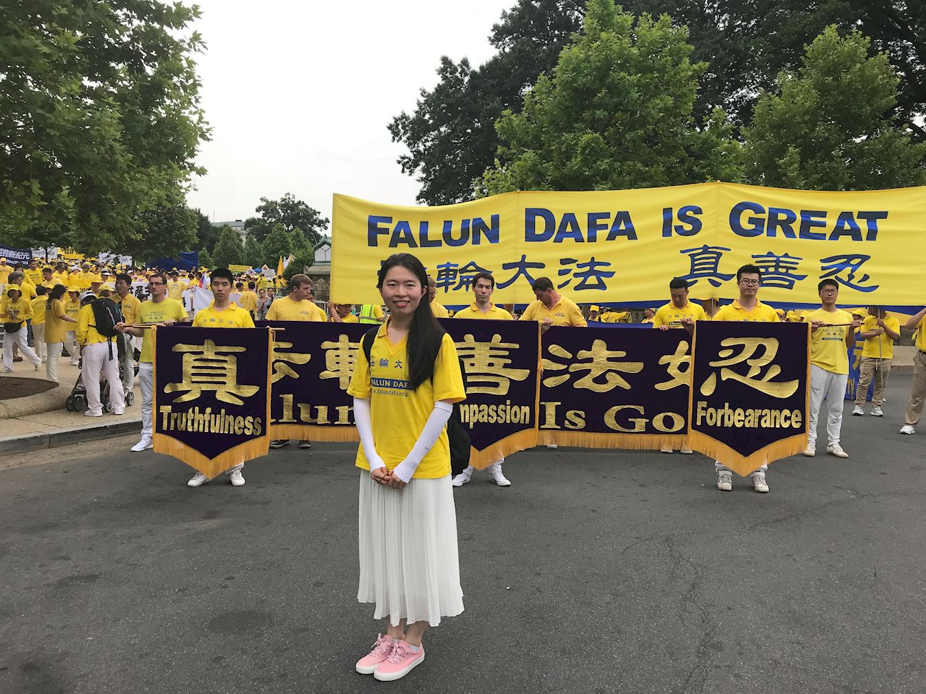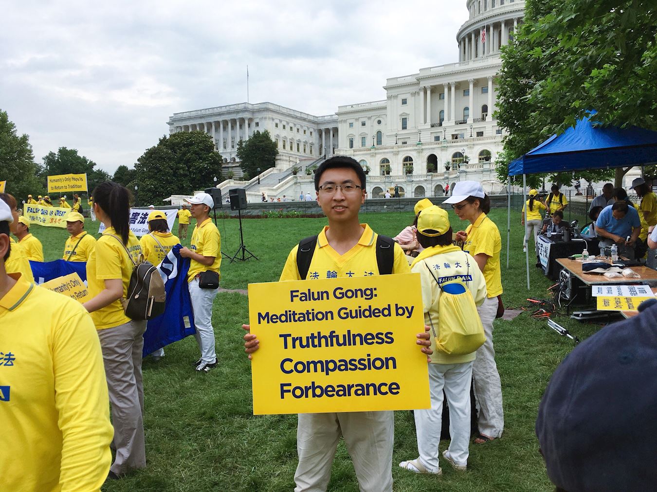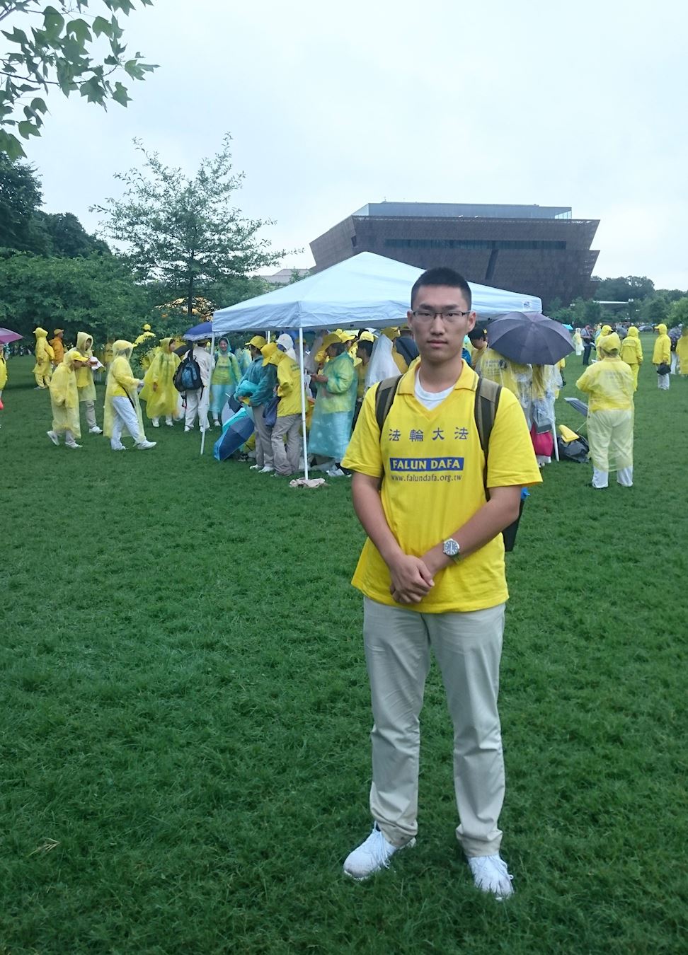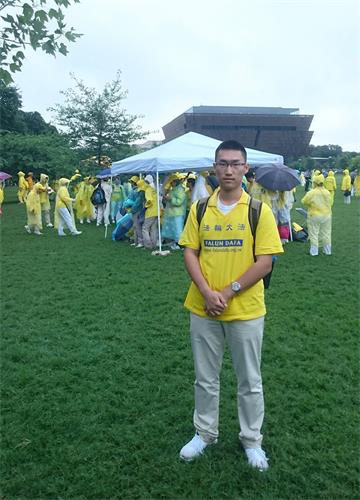 今年六月二十日,是林雨杉第一次在华盛顿DC参加法轮功学员大型反迫害活动以及修炼心得交流会。他说:“当我一早来到大炼功的场地时,我被眼前壮观的场面所震撼,因为这是我第一次看到数千名大法弟子聚在一起炼功,我的心中充满了激动与幸福感。在打坐时,我能够感受到周围许多股能量都在激励着我。我在举着大横幅游行时,面对路边驻足观望的行人,我感受到一种神圣的使命感——一份将大法的美好传递给世人、救度众生的责任。