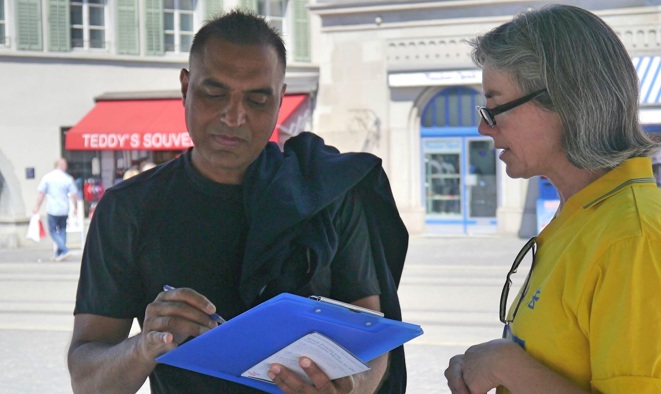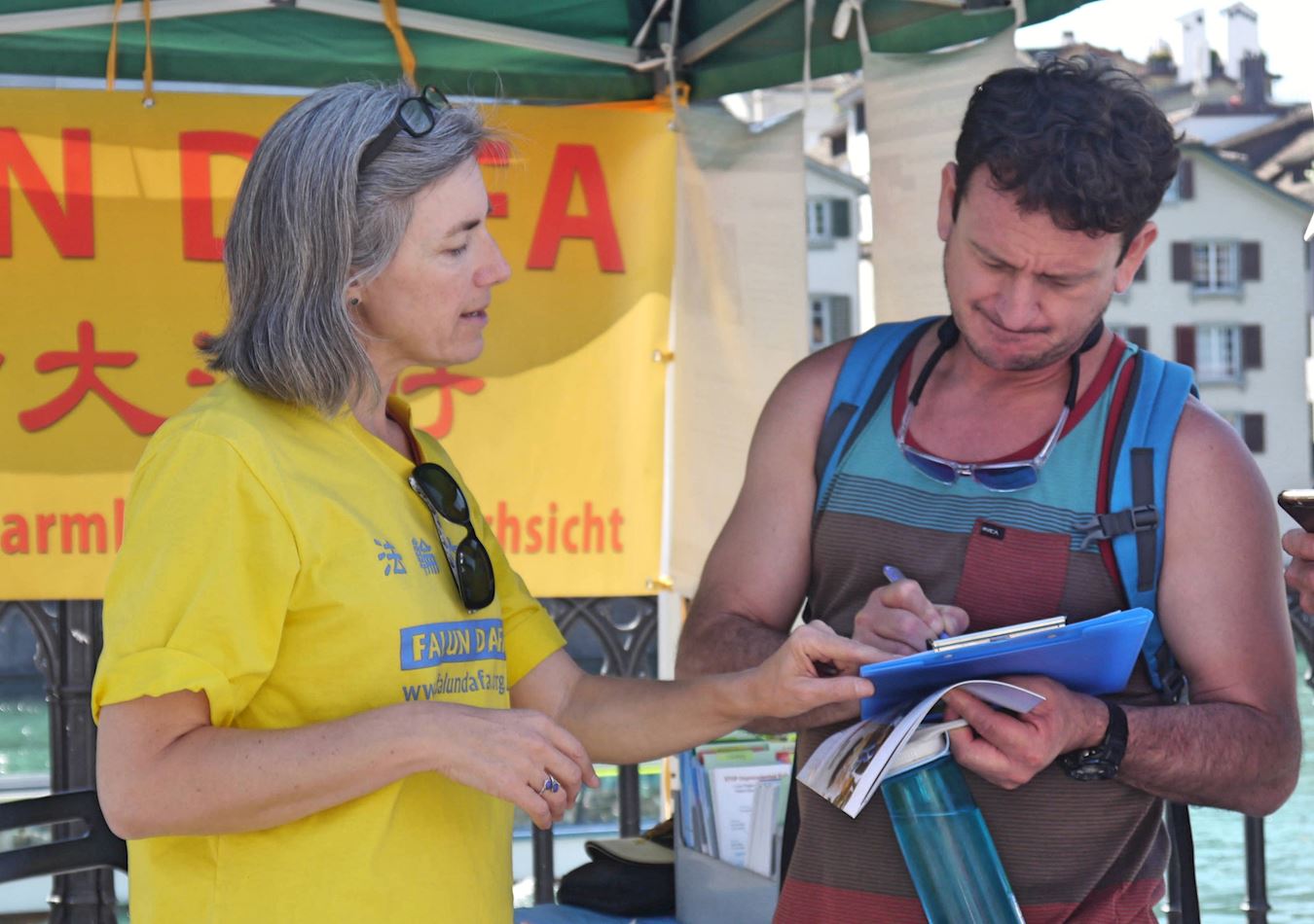 他们中有的已经听说过法轮功,直接签名表示对法轮功的支持;有的得知中共活摘器官的暴行后非常震惊,在为制止这一罪行签名后还想了解更多关于法轮功的讯息;有的在签名后主动要求带上空白的征签表,要帮忙在亲朋好友中征签……
