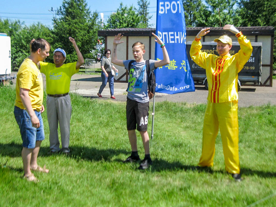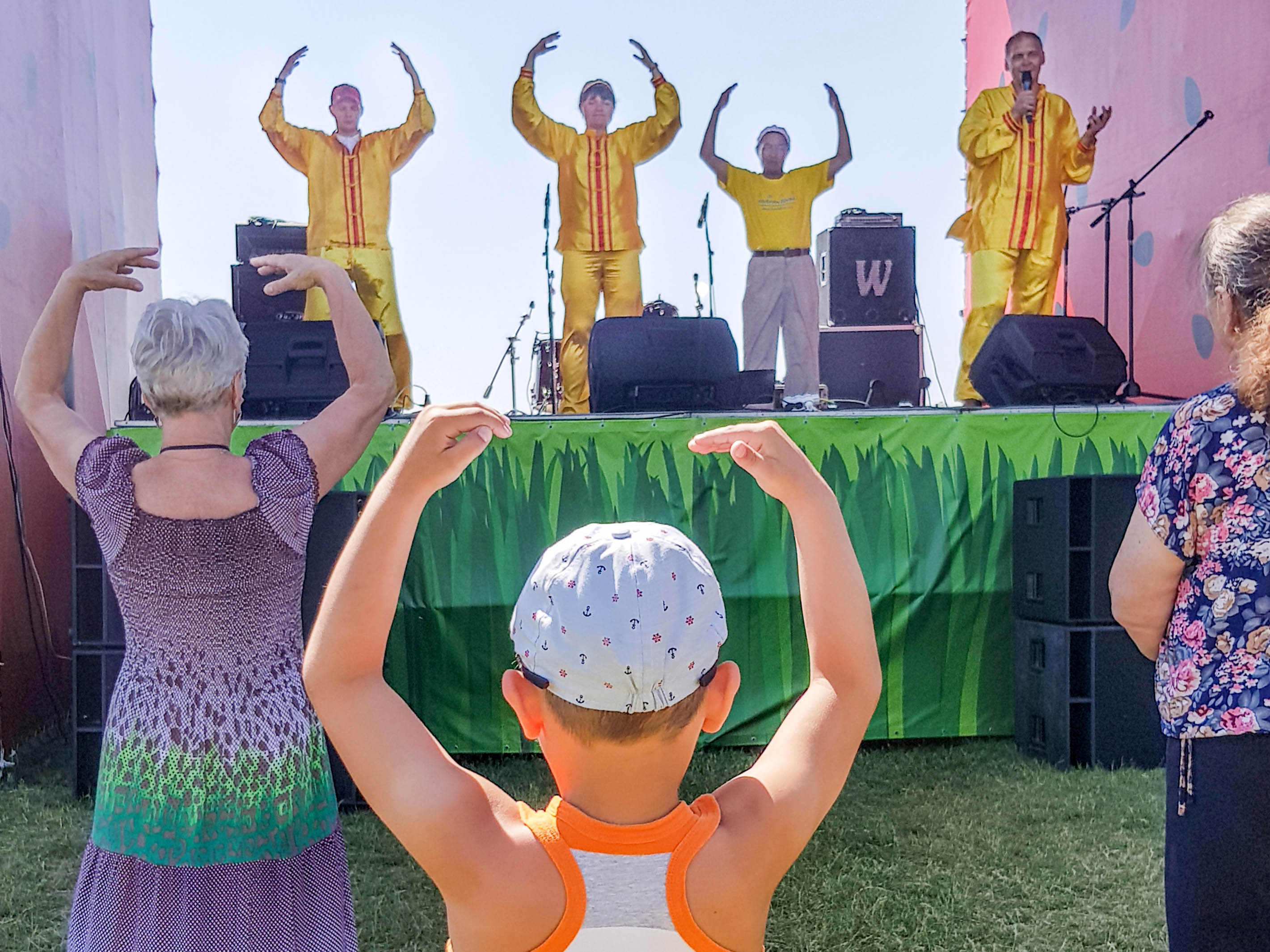 “‘真、善、忍’,这是现代人必需的品质!谢谢让我有机会了解这些。”一位听了真相的女士说到。瓦迪姆第一次听说法轮功,和他的妻子在舞台旁一起学炼动作后分享到:“学炼后马上身体轻快了,这是一个很好的功法!”