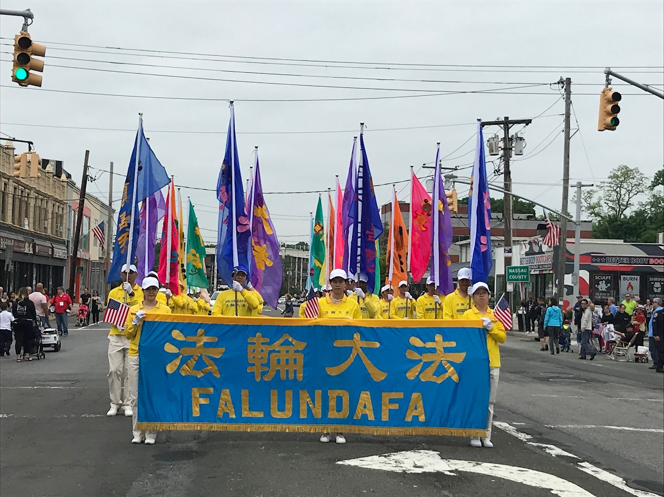 【明慧网二零一八年六月三日】(明慧记者采菊纽约综合报道)二零一八年五月二十八日是全美阵亡将士纪念日,纽约皇后区举办全美最大的阵亡将士纪念日游行——第九十一届“小颈-道格拉斯顿阵亡将士日游行”,向为国捐躯的军人表达敬意,有超过一百五十个团体参加,数万人观看。法轮功队伍受邀再次参加游行,传播真、善、忍理念,受到民众的欢迎和支持。