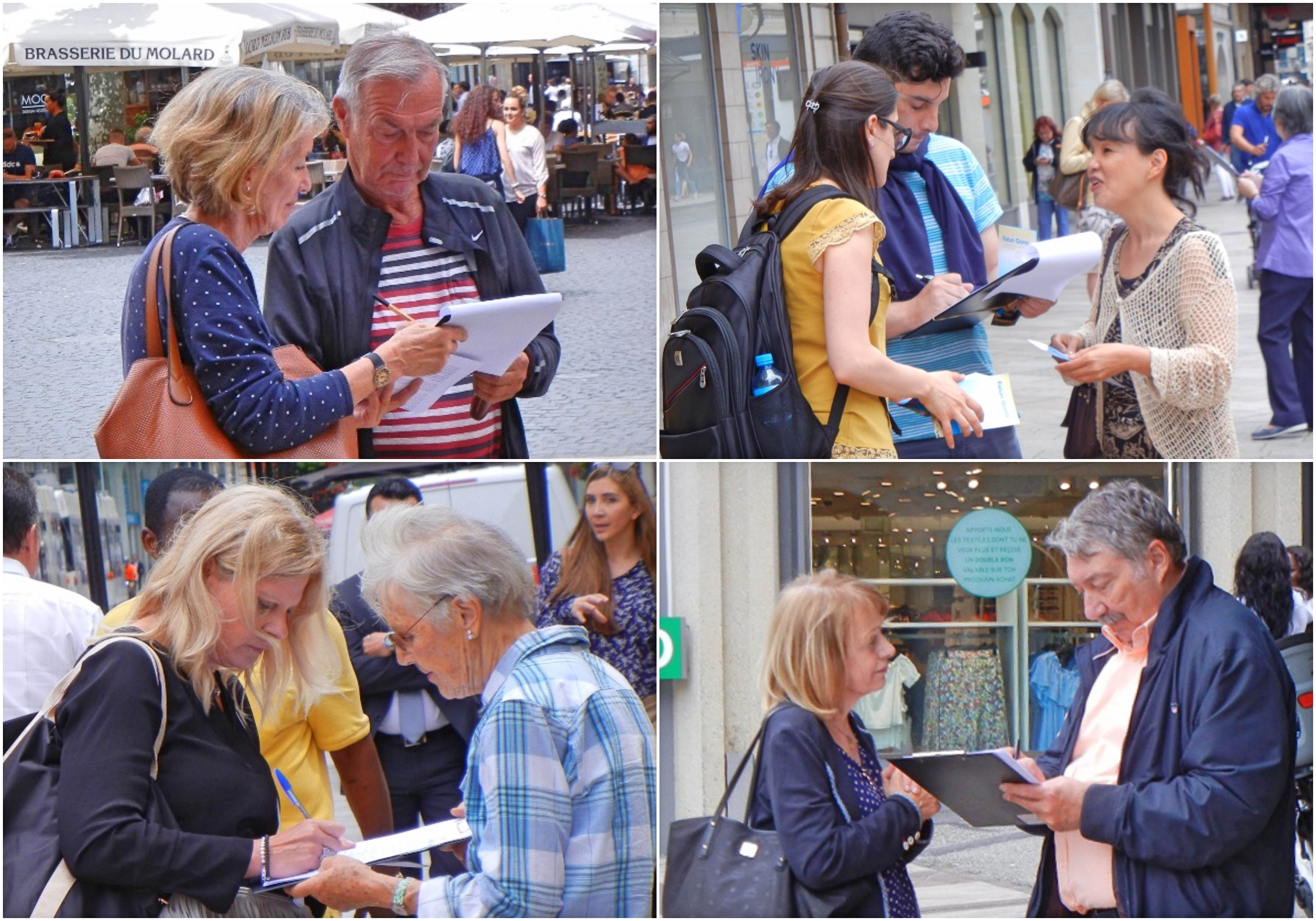 一位八十三岁的瑞士老先生表示,他知道法轮功的事情,这种活摘法轮功学员器官的事情是绝对不能够接受的。他认为法轮功学员很勇敢,很有勇气。他不仅签名表示支持法轮功学员反迫害,还特意要了一份关于中共活摘法轮功学员器官的调查报告,表示要很好地看一看,并且让更多的人知道。