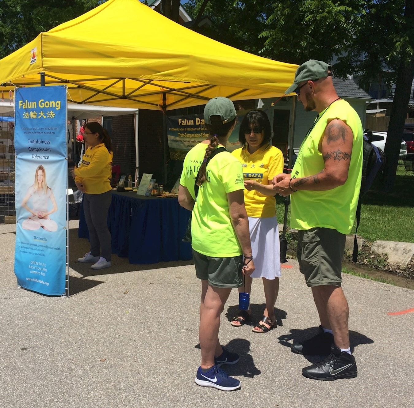 图1:韦伯斯特艺术节(Webst Arts Fair)上,法轮功学员向游客介绍功法