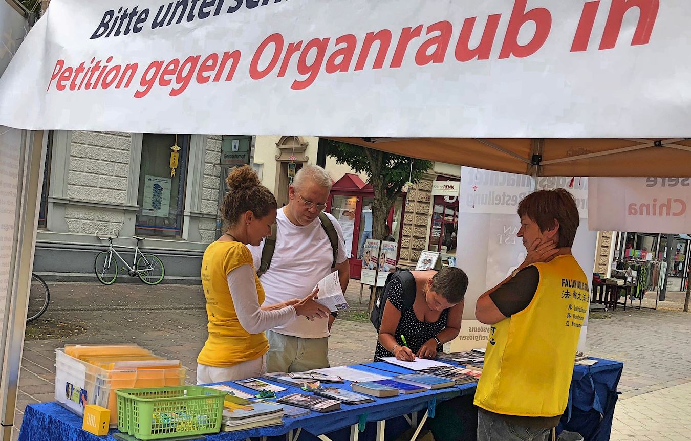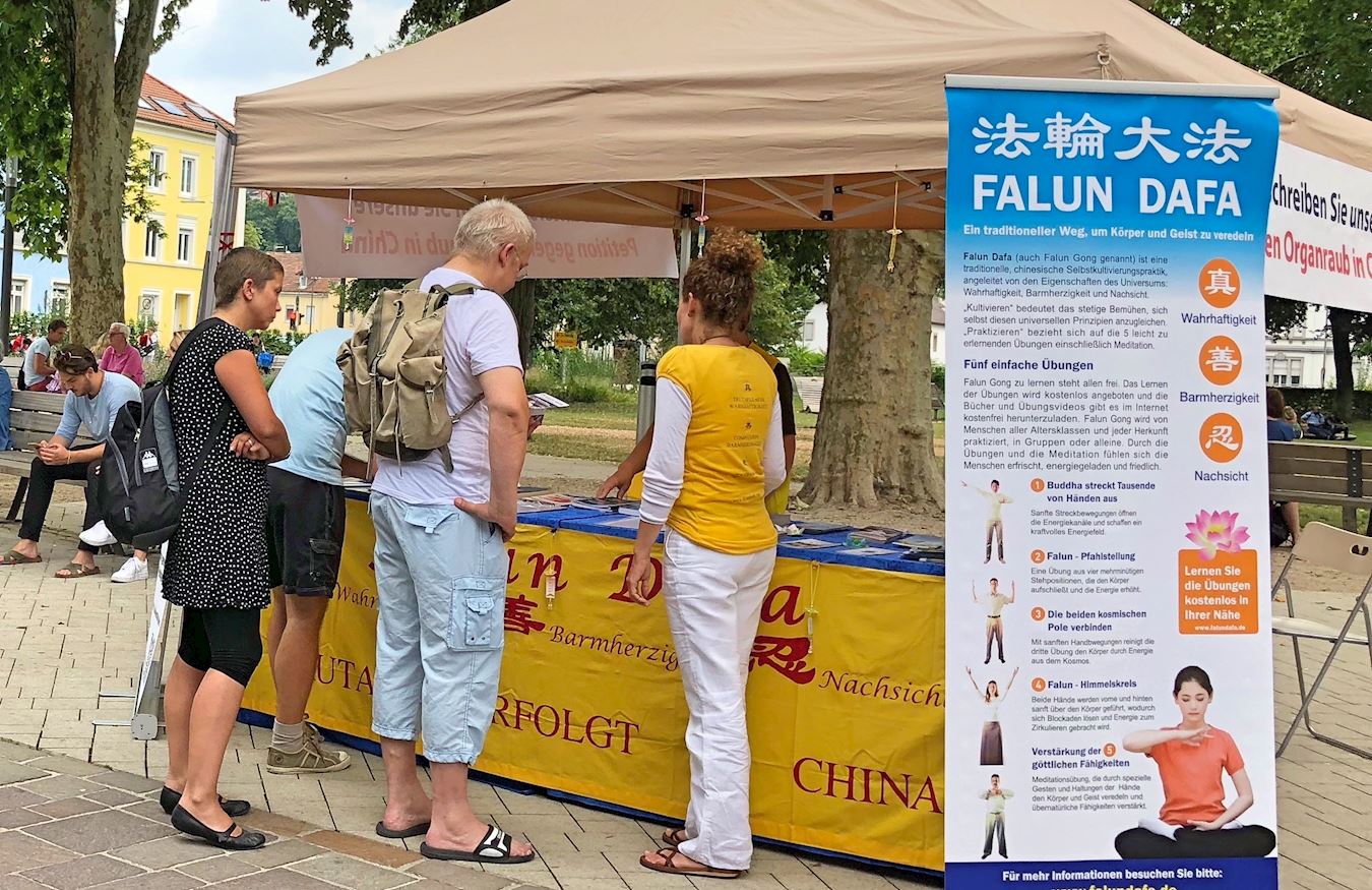 几个小时之后,贝恩德又回到法轮功学员的真相点,他表示想知道更多关于法轮功的信息。他说自己曾经去过印度,也读过很多关于老子、孔子的书,他也打坐,并且相信打坐、修行可以使人和上天相连。学员告诉他法轮功就是一种佛家修炼大法,按照真、善、忍的原则修炼自己。他很感兴趣,拿了很多关于法轮功的报刊和传单。