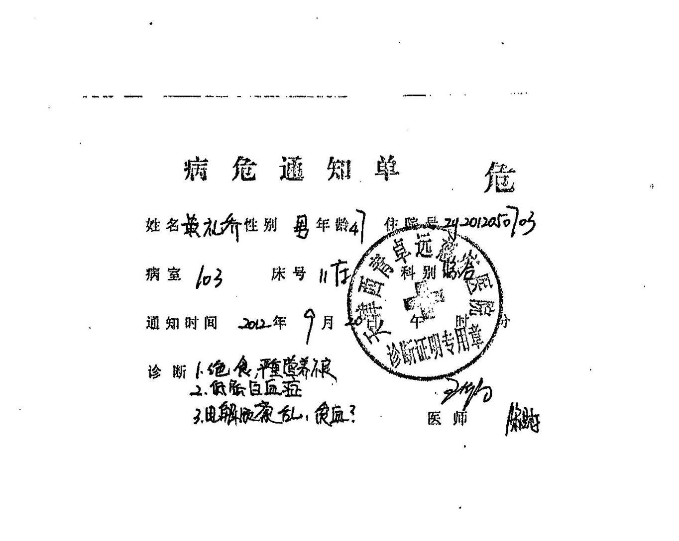 黄礼乔二零一二年九月二十日被迫害生命垂危,在医院下达病危通知书不符合看守所关押条例的情况下,河北法院于九月二十八日依然强行把黄礼乔转入西青监狱传染病毒最密集的肺结核监区。而西青监狱在十月十日收到用担架抬入狱门的黄礼乔,在他生命如此垂危的情况下,对他实行灭绝性的酷刑。西青监狱少则几人,多则十几人包夹他一个人,他们把黄礼乔用绳子绑在床上,双手和双脚被绑在床的四个角上,人根本就没有反抗能力,然后他们暴打黄礼乔的双腿和胃口,这个过程持续有三十分钟左右的时间,然后他们松开绳子,把黄礼乔的双手背后,吊在窗户上,当时黄礼乔已经失去知觉。当黄礼乔醒来后已经躺在了地上,然后他们对黄礼乔又进行暴打,打的黄礼乔吐了很多血。