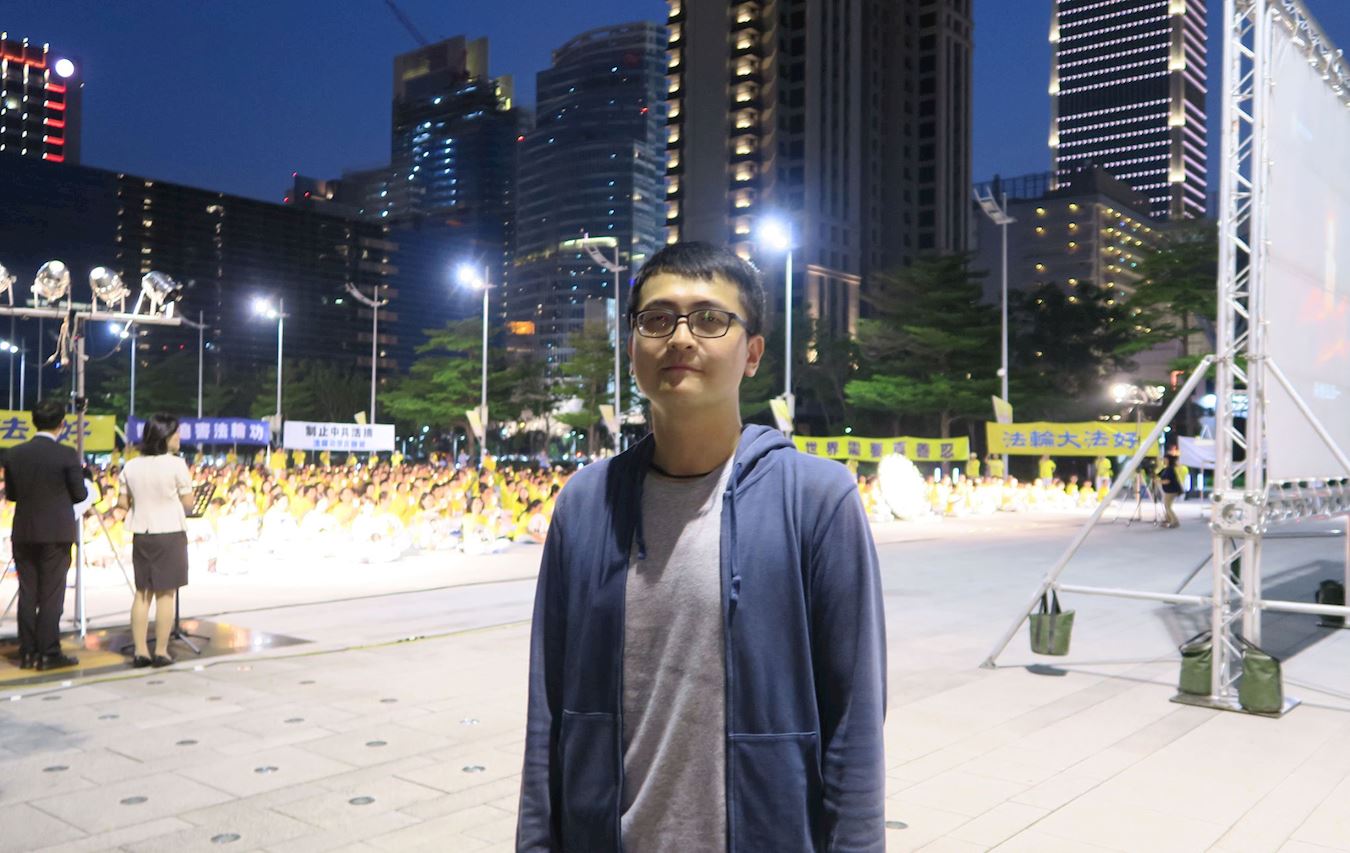 从事科技业的李先生专程来到现场声援,他用手机拍下活动照片,传给在大陆的同事看。李先生表示,兄嫂正坐在广场上,他们因为修炼法轮功身心受益。而他也曾经接触过法轮功,所以了解法轮功是正的,是好的,以及中共污蔑、打压法轮功的手段。他建议法轮功学员要不断地向人们讲述真相,不论是台湾人或大陆人,让更多人知道真相,就不会只听信中共的造谣。