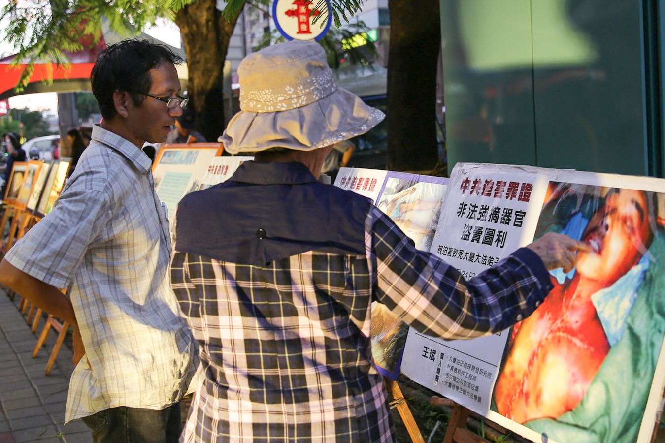 来自台南西港的市民郭氏夫妇第一次遇到法轮功,沿着真相展板一片片非常仔细的阅读着,郭先生明白了法轮功真相,他表示:“我觉得法轮功很正、很好,我看到炼法轮功的人都很健康,很善良,我支持法轮功。”郭先生还说:“希望共产党这个魔鬼赶快消失掉,中共赶快解体,使中国能成为一个真正的民主国家,人权得到保障,信仰得到尊重。”