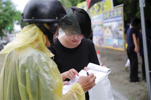 他期盼有更多的善良人、正义之士走出来,一起反抗和谴责中共,一起制止这场迫害。他也在制止迫害的征签表上签上姓名,并说回去会跟同学讲法轮功真相和在社群网路帮忙传播真相,制止迫害。