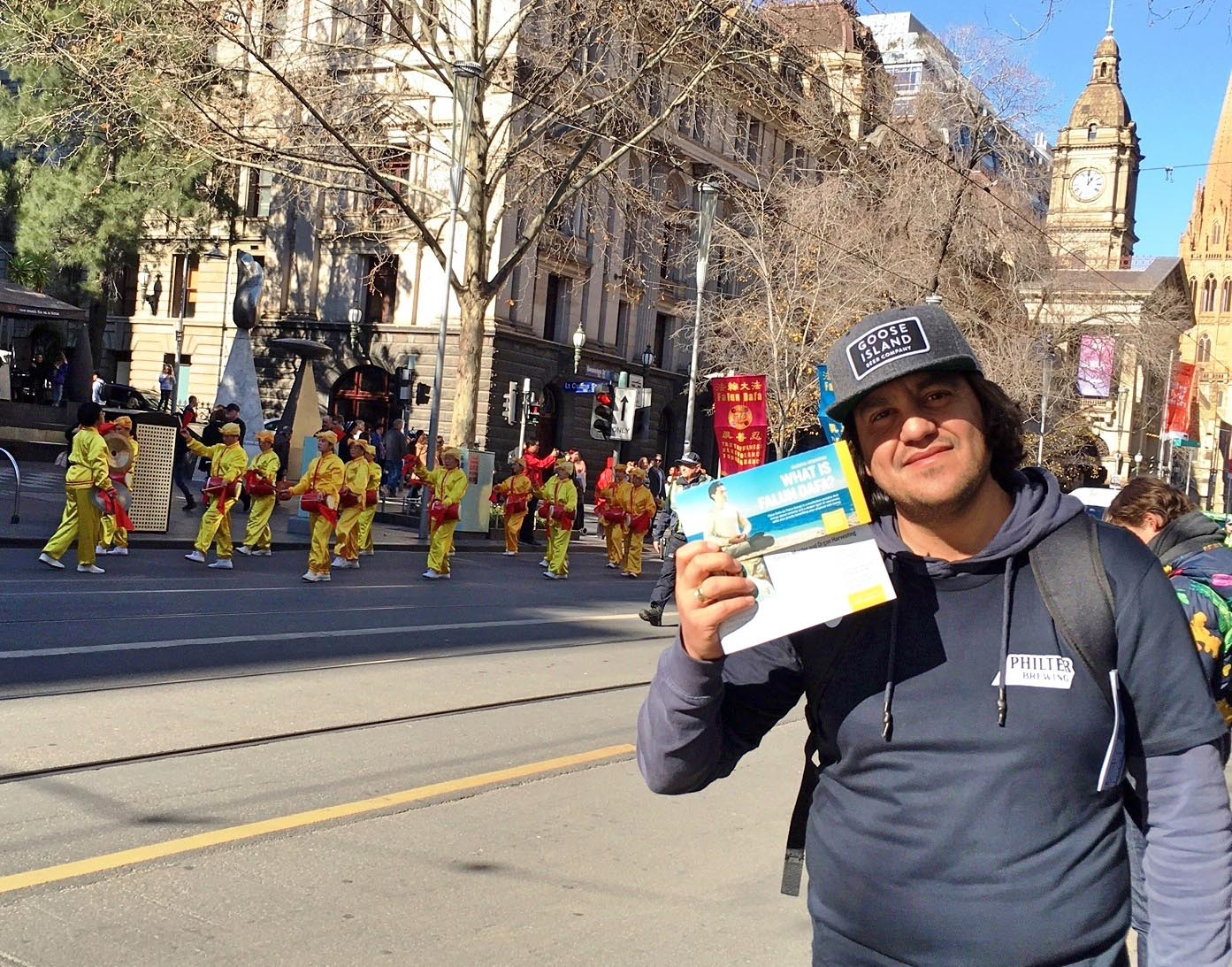 墨尔本居民、一家公司的信息技术部门经理丹尼尔·凯恩(Daniel Keine)远远看到游行队伍在穿越唐人街,他特地赶过去观看。