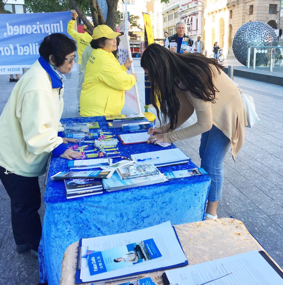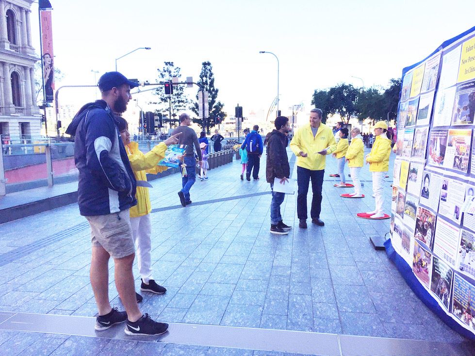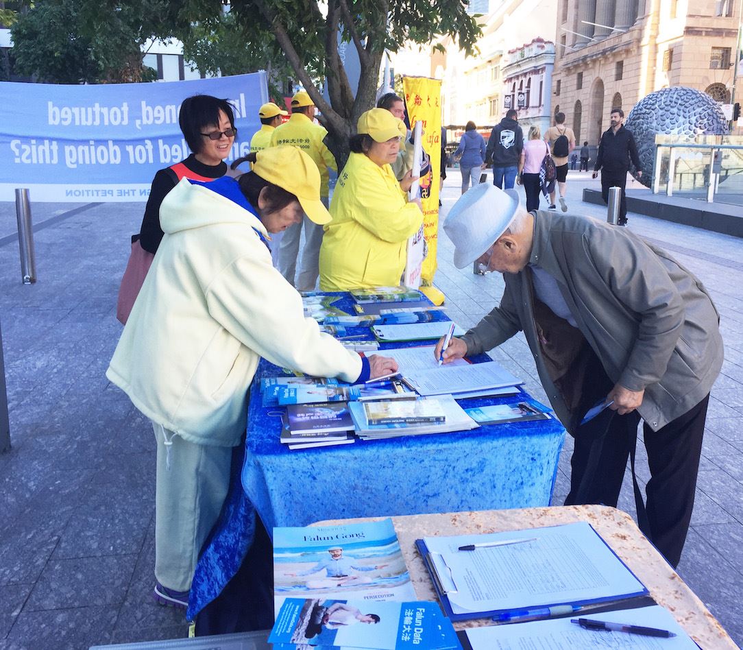 布里斯本广场是近年来学员讲真相、揭露中共迫害法轮功罪行的主要场所之一,行人中有不少人已经了解了迫害真相,对迫害仍在继续表示愤慨。也有一些人是初次听说法轮功,当他们得知千百万无辜民众因信仰“真、善、忍”遭到中共邪*党-长达十九年的迫害后感到非常震惊,纷纷在征签簿上签名,支持法轮功学员的和平抗争。