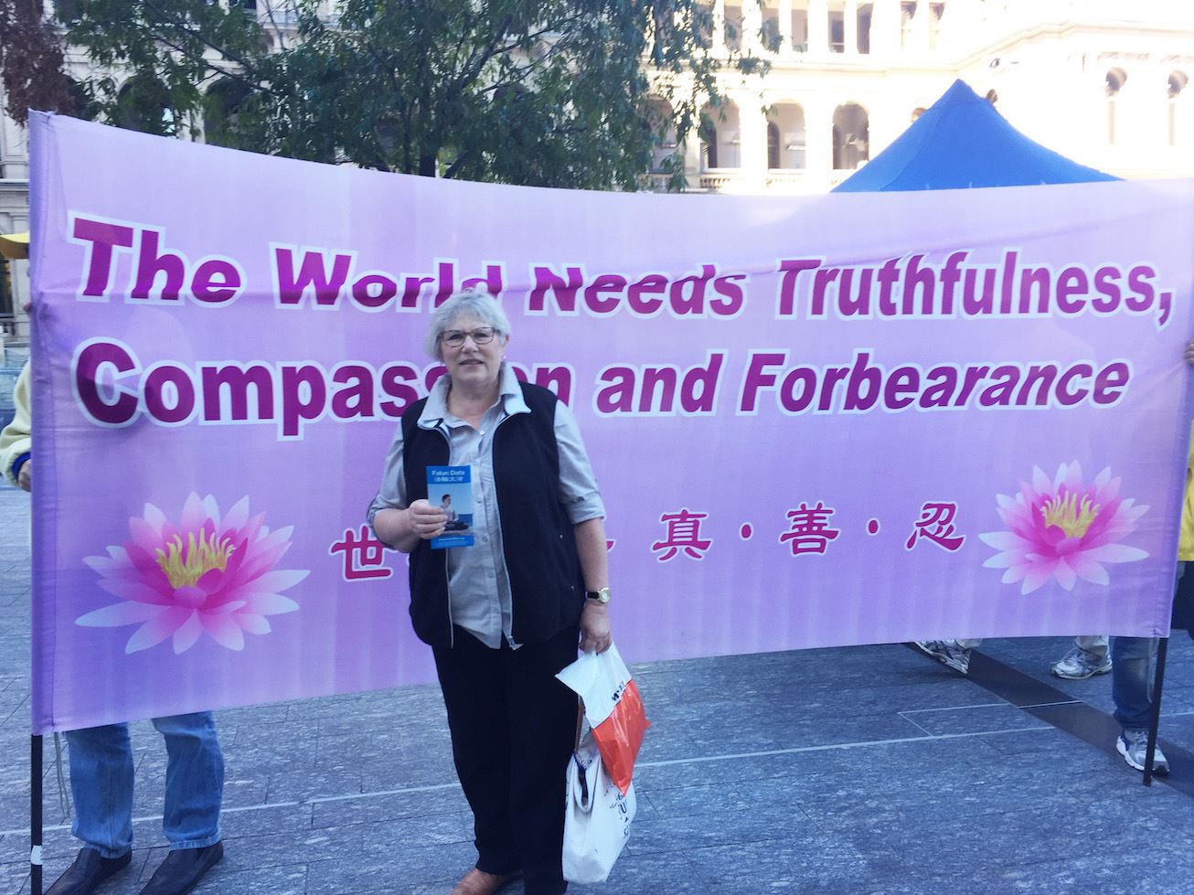 卓伊(Joy)是国际妇女争取和平与自由联盟(Women’s International League for Peach and Freedom)的成员。当她了解到法轮功学员遭受残酷迫害的真相后,对学员持续十九年的和平抗争深表同情,并立刻在征签簿上签名,支持法轮功的正义之举。她说:“我崇尚和平、正义与自由。我完全支持你们。每个人都应该享有信仰自由,这场迫害必须被制止。”