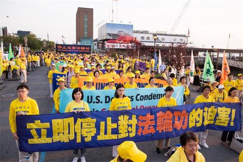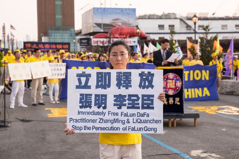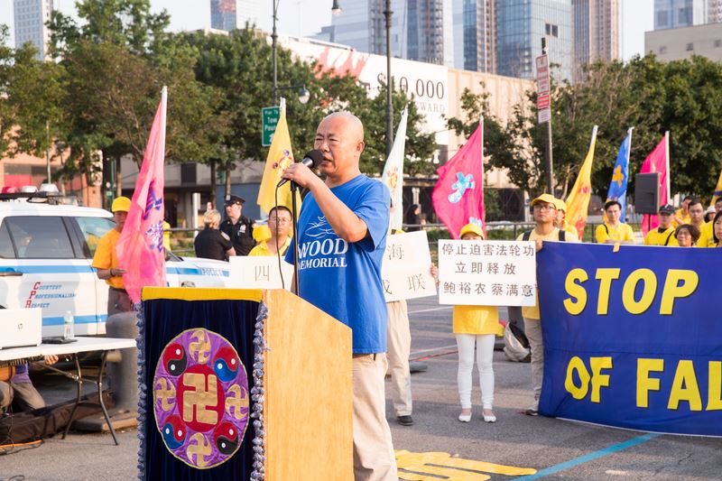 一九九九年七月二十日,中共发动了对信仰真、善、忍的法轮功修炼群体的镇压,残酷迫害一直持续至今。十九年来,面对着血腥迫害,法轮功学员始终坚守着法轮大法所教导的真、善、忍准则,和平反迫害。每年的七二零前后,纽约法轮功学员都会来到中领馆前集会呼吁停止迫害。