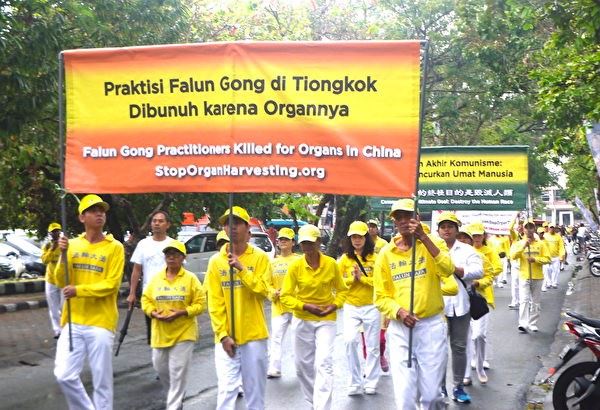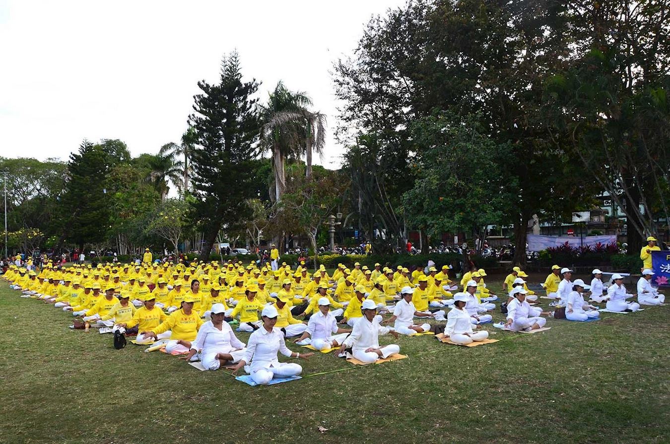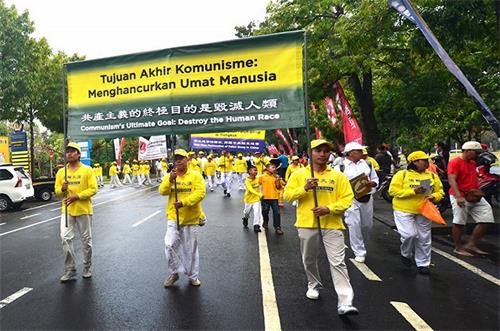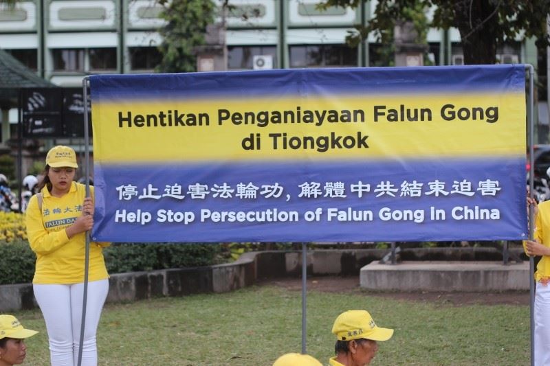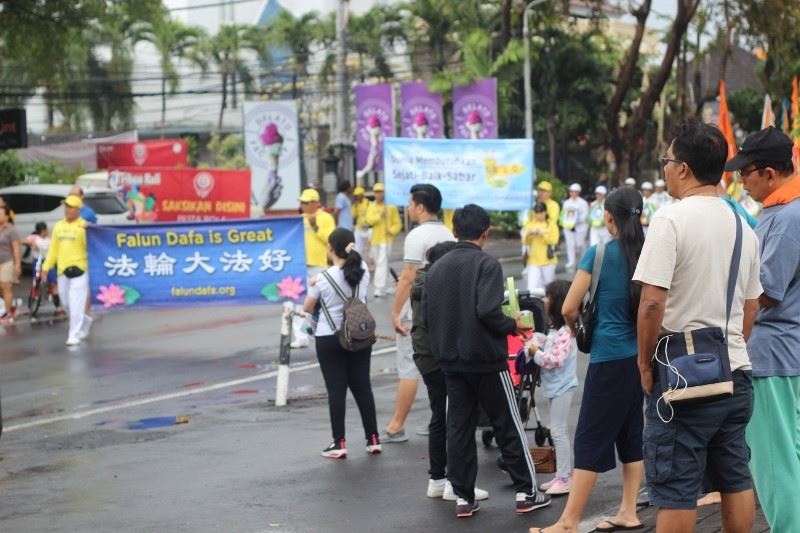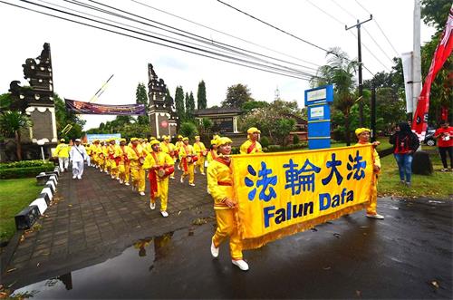 ![]() 图11:巴利岛法轮功学员在巴东普普丹广场集体炼功 |
