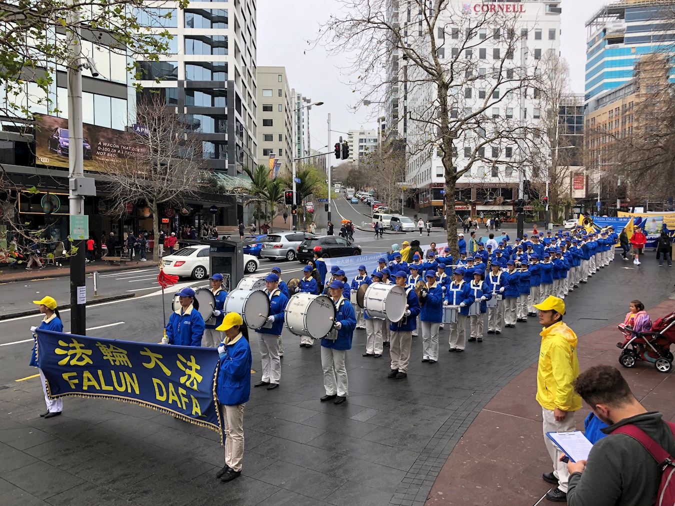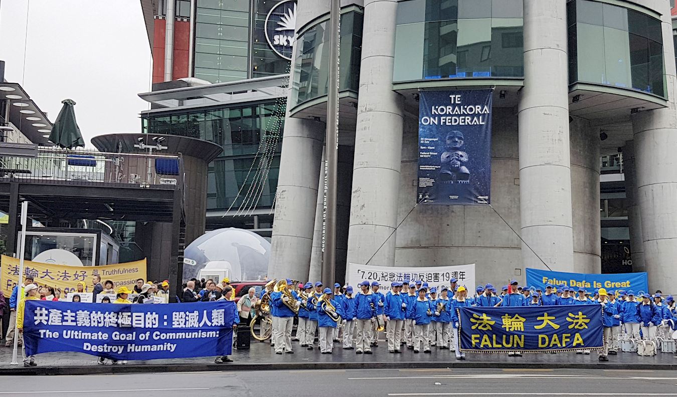 随后,法轮功学员在市中心皇后大街游行,上百人组成的纽澳天国乐团格外引人注目,整齐的队服,雄壮的乐曲,震撼人心。人们纷纷主动上前了解真相。了解真相后的人们纷纷在征签板上签名,希望能帮助制止中共迫害法轮功学员。