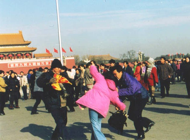 ![]() 法轮功学员在天安门和平请愿,遭警察、便衣粗暴抓捕 |