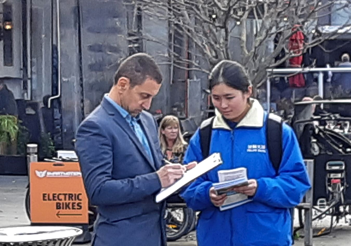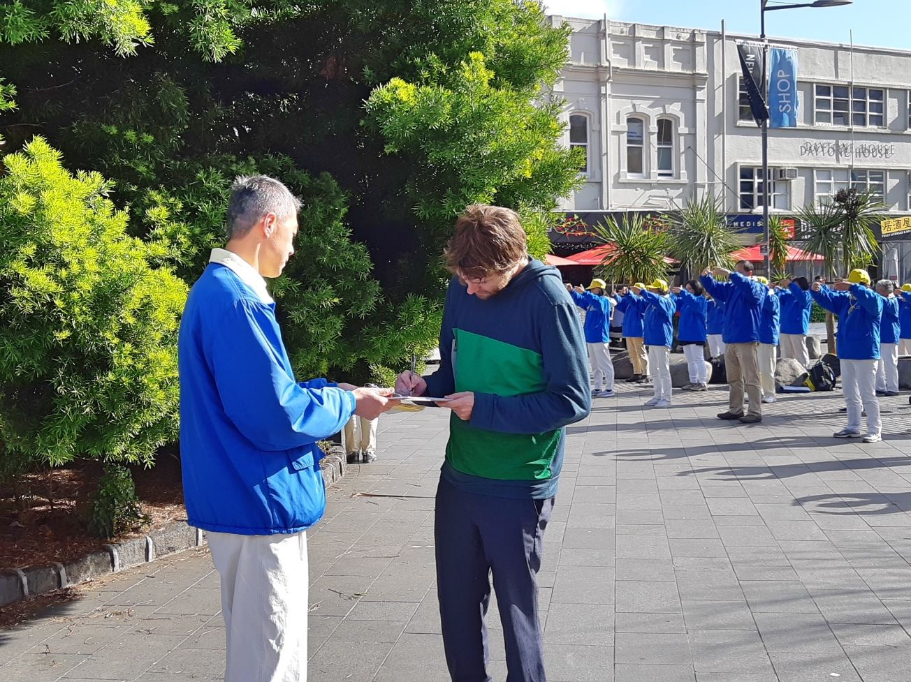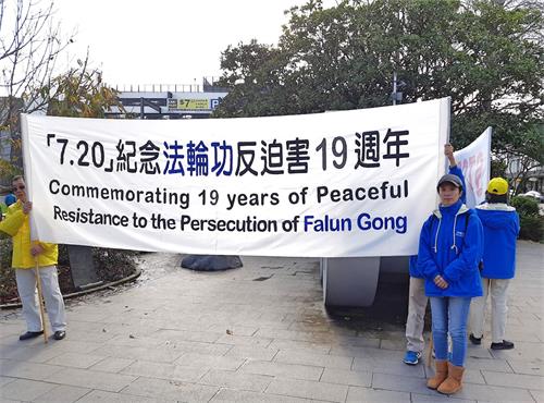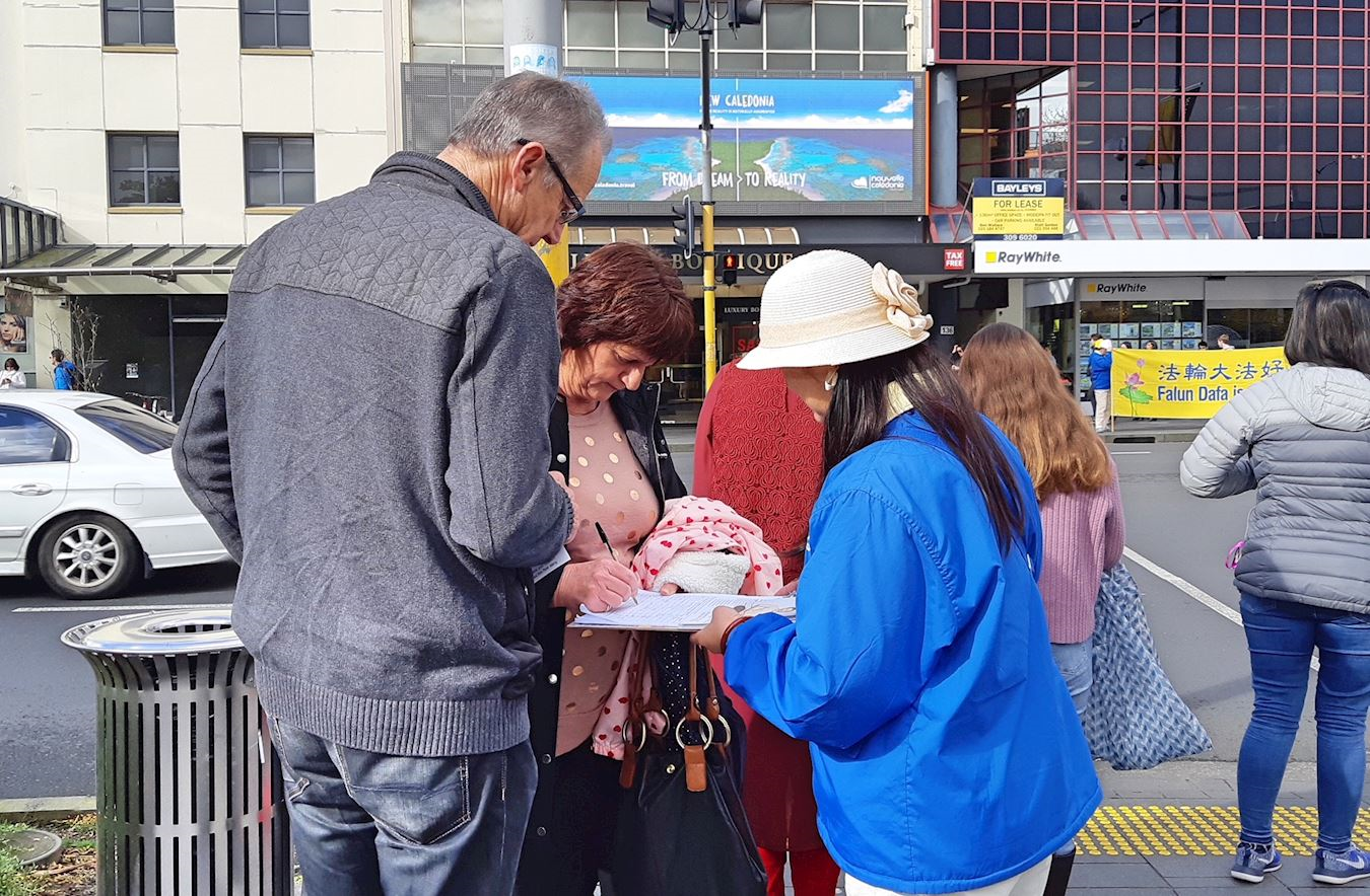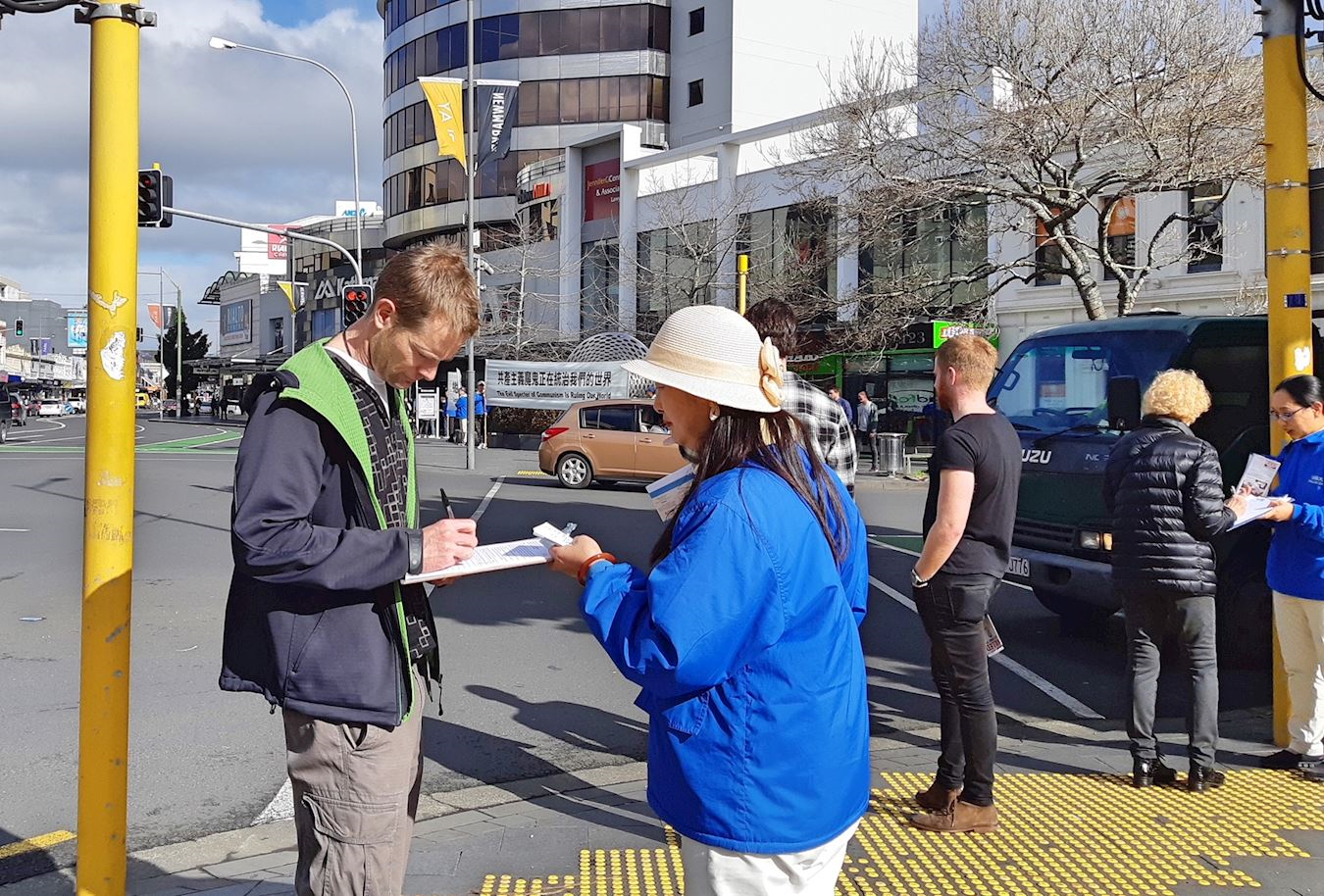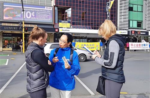 ![]() 图1~2:反迫害十九周年,新西兰法轮功学员们在奥克兰新市场(Newmarket)商业街传播真相,呼吁制止迫害。 |