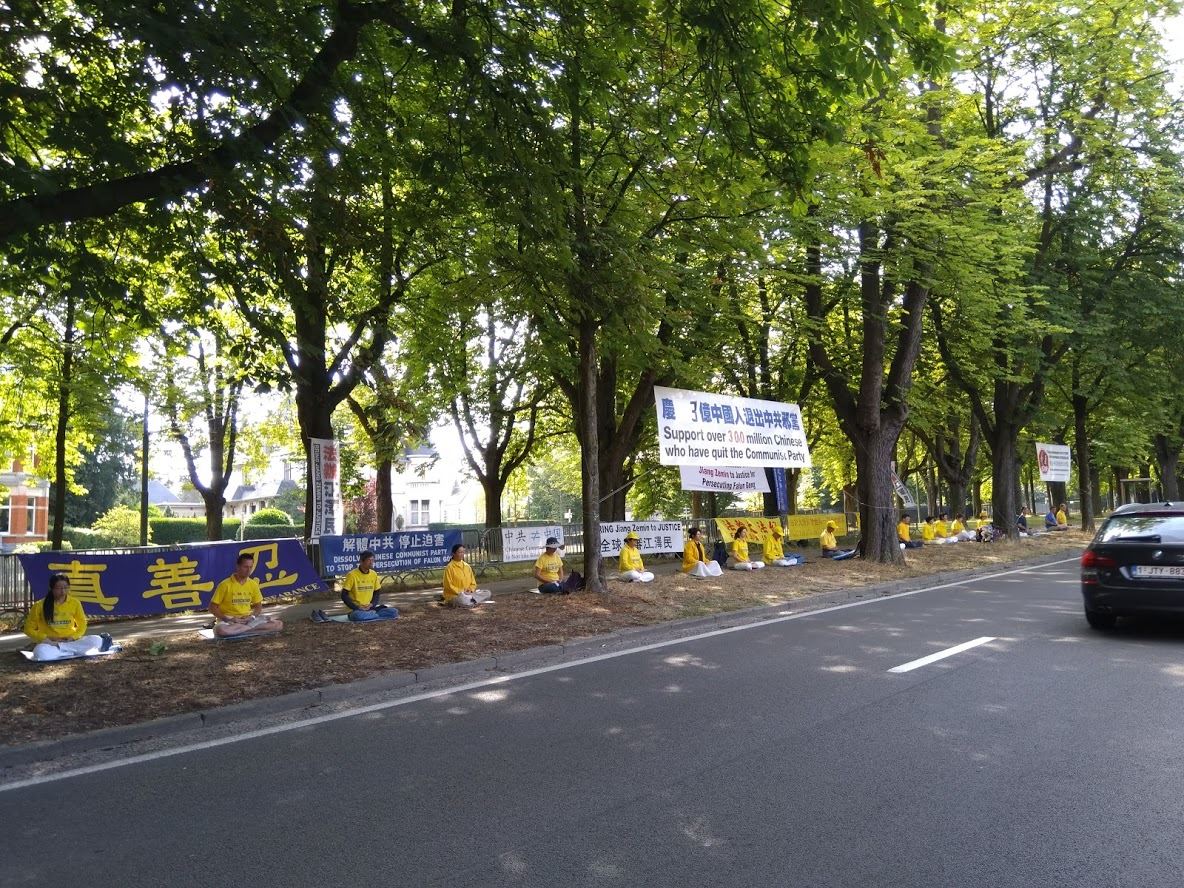 十九年过去了,迫害依旧没有停止,而和骆雯一起参加抗议活动的人也在逐年增加。今年有一对特别的客人,那是一对来自台湾的修炼法轮功的夫妇,妻子美惠从事教育工作。当年骑着单车游历欧洲的美国丈夫,特别希望趁着暑假,带着美惠来美丽的欧洲看看。恰逢七二零,她们找到比利时当地学员,来参加这里在使馆前的抗议活动,以及后来在市中心的洪法活动。