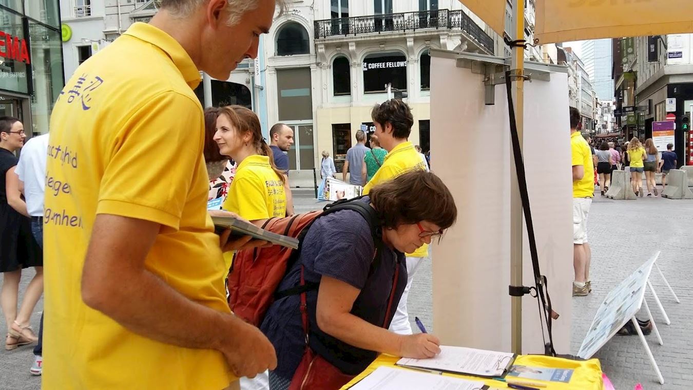 ![]() 图3:比利时民众签名支持法轮功反迫害 |