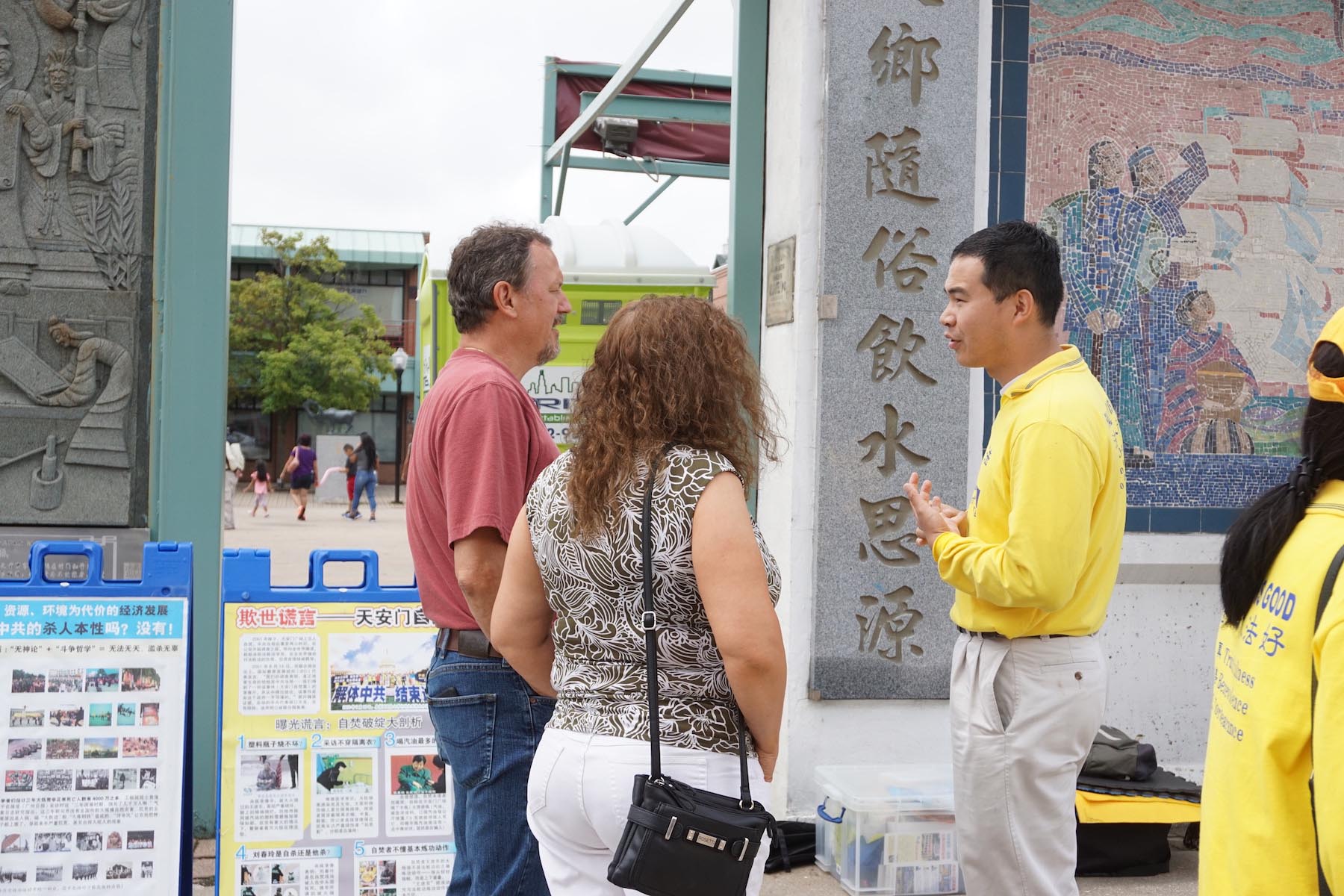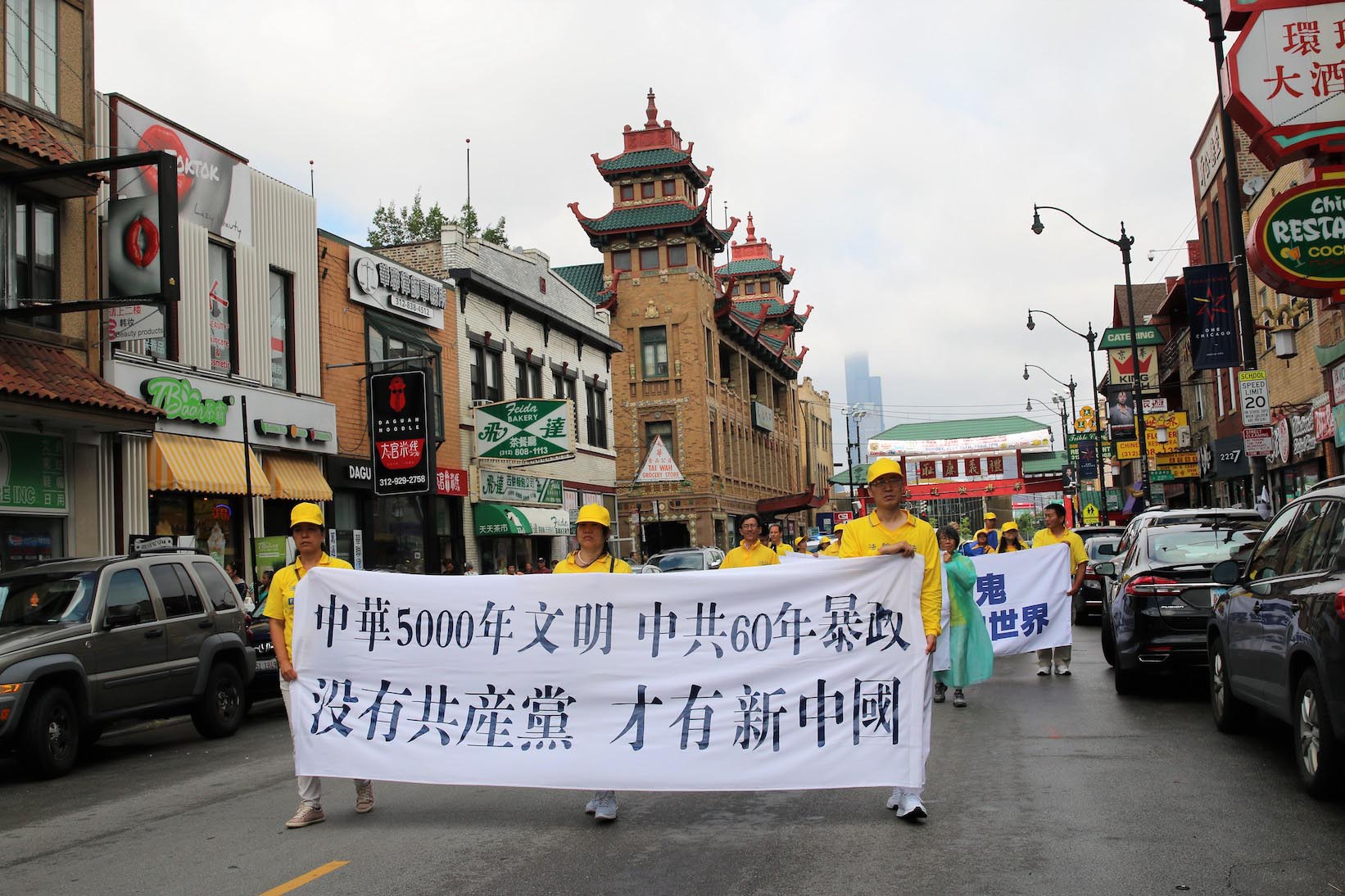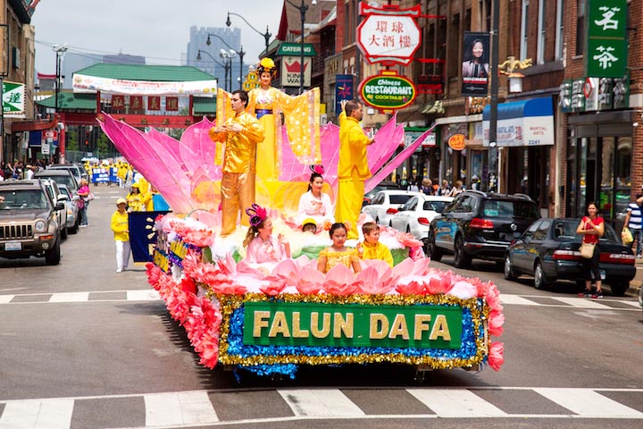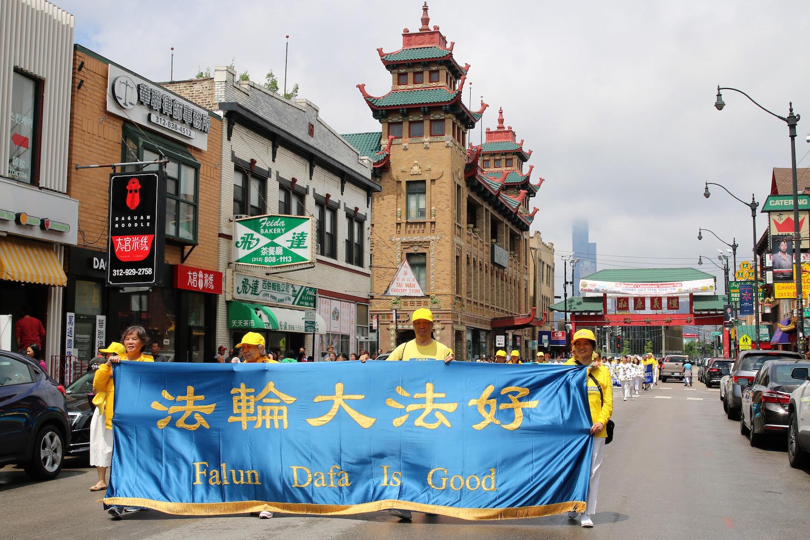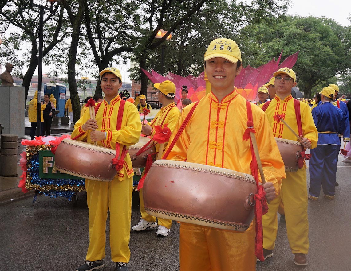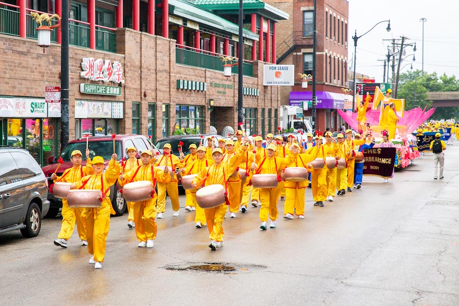 美国第三大城市芝加哥,其市中心的唐人街是美国东部规模最大、最繁荣的唐人街之一。法轮功学员们手持中英文“法轮大法好”、“真善忍”和“七二零法轮功反迫害19周年”等大型横幅,走上中国城中心的永活大街,在刻有孙中山手书的“天下为公”的地标式牌楼下穿过,路过著名的华阜广场,向中西方民众传递真相,呼吁制止迫害。