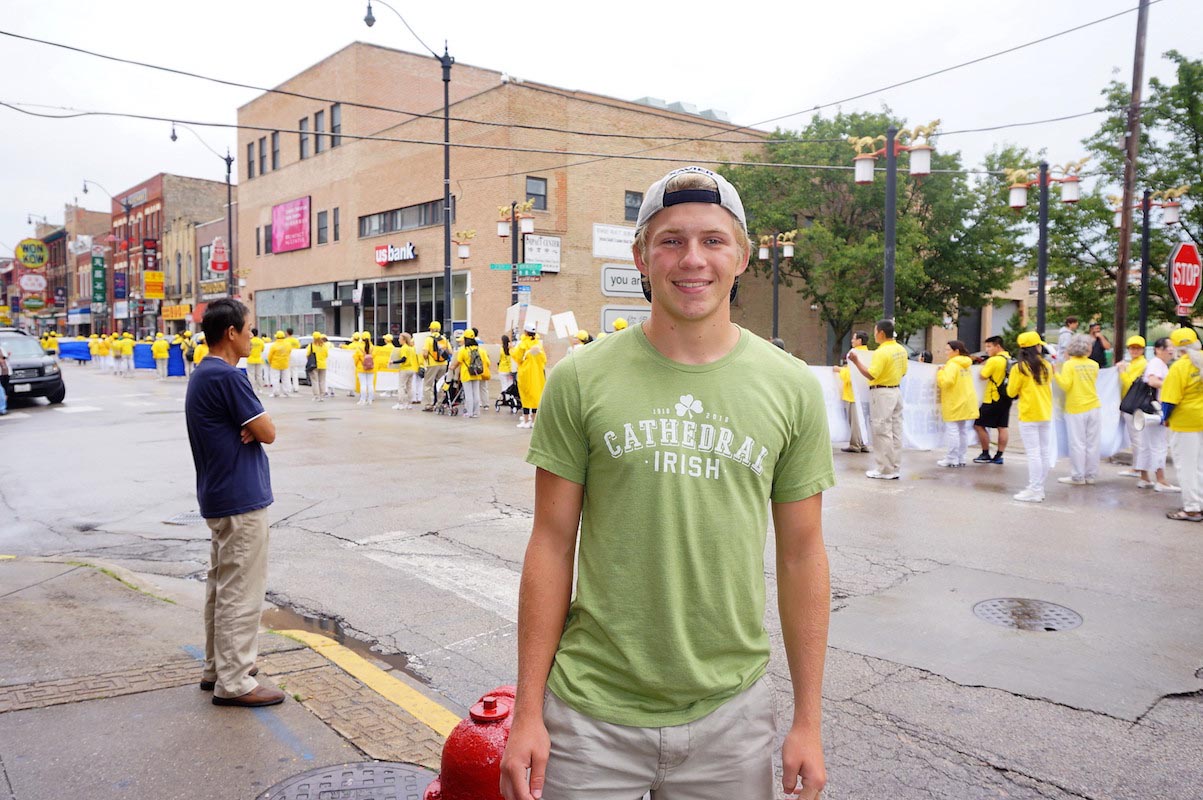 王同学从八个小时车程外的内布拉斯加州赶到芝加哥。正在读博士的他想对民众说“修炼是更高的科学”,“让我知道了更多平时学习中得不到的真理,特别是做一个好人这种因缘关系,(很多事情)并不是自己努力就可以得到。打坐修炼使我在学习上,特别是做研究上,更好的提高智慧。很多时候在打坐以后,突然出现灵感。”