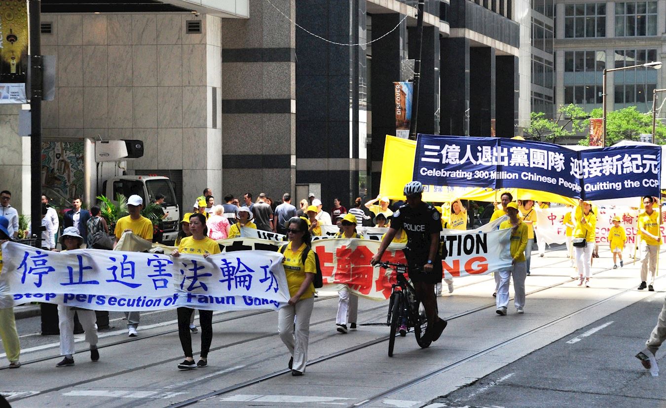 ![]() 图1~13:13:二零一八年七月二十日,多伦多法轮功学员在市中心举行“七二零”十九周年反迫害大游行。 |