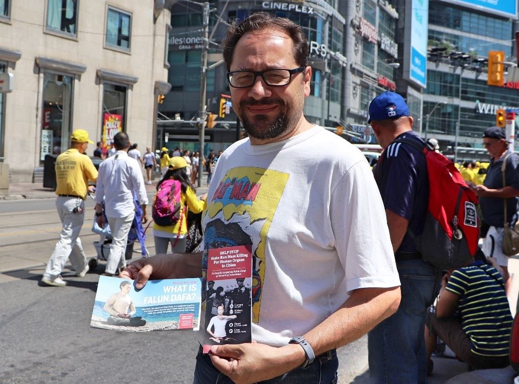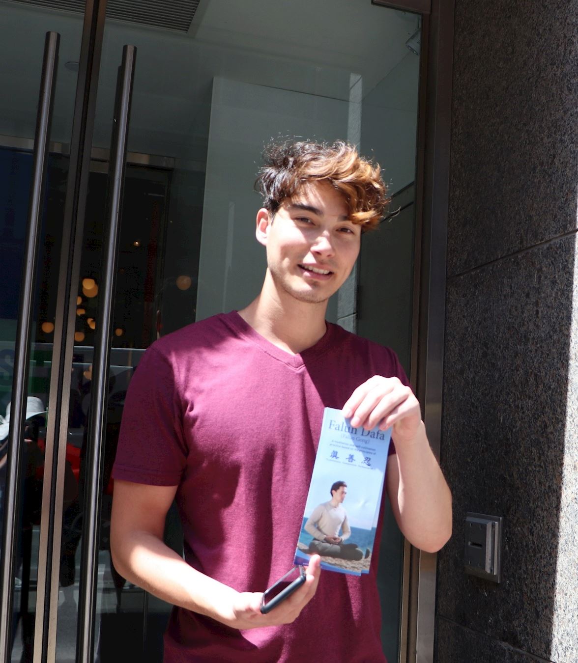 他告诉记者:“在市中心经常有法轮功学员在讲真相,我也常看英文大.纪.元;,所以我知道他们是按‘真、善、忍’原则做人,但面对这么邪恶的中共,他们还在继续坚持和传播他们的理念,真的是很大的难度,我真的是非常佩服他们,我从心里致以他们最真诚的祈祷!”