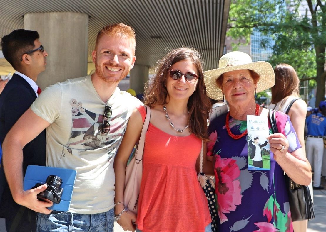 在一家金融公司就职的工程师麦克说:“从游行中第一次了解了法轮功的这么多的信息,很感触,同时也很痛心,没想到在二十一世纪的今天还有这么残酷的迫害在这个世界上发生着,我读过很多历史书,都知道共产党是邪的,有关中国的历史我也知道,CCP(中共)就是独裁和专制。今天的游行很好,让更多人知道并一起来制止迫害。我们一定支持反迫害。”