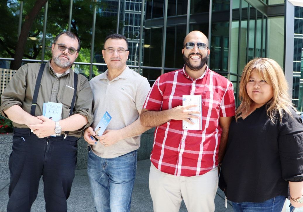 在多伦多大学就读博士的李先生听完法轮功学员讲三:退.的意义后,说:“我之前都听说过法轮功的真相,我也一直没做三:退.,今天就退了吧。非常感谢法轮功。”