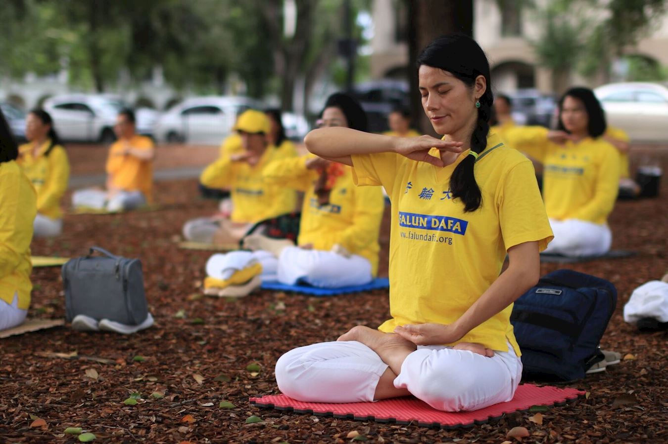 ![]() 图1~3:法轮功学员聚集在奥兰多市中心的伊奥拉湖(Lake Eola)公园集体炼功 |