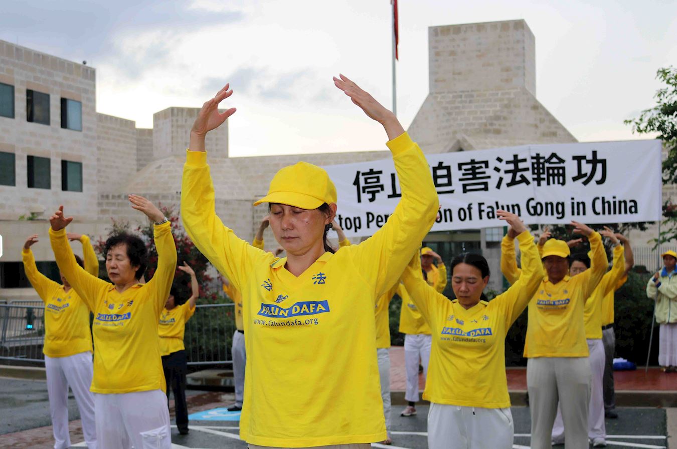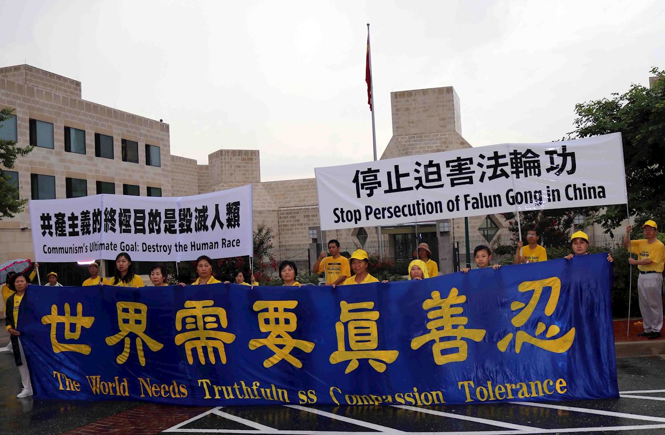 ![]() 图1:二零一八年七月二十二日傍晚,美国华府地区部份法轮功学员在中共驻美国大使馆前呼吁停止迫害法轮功。 |
