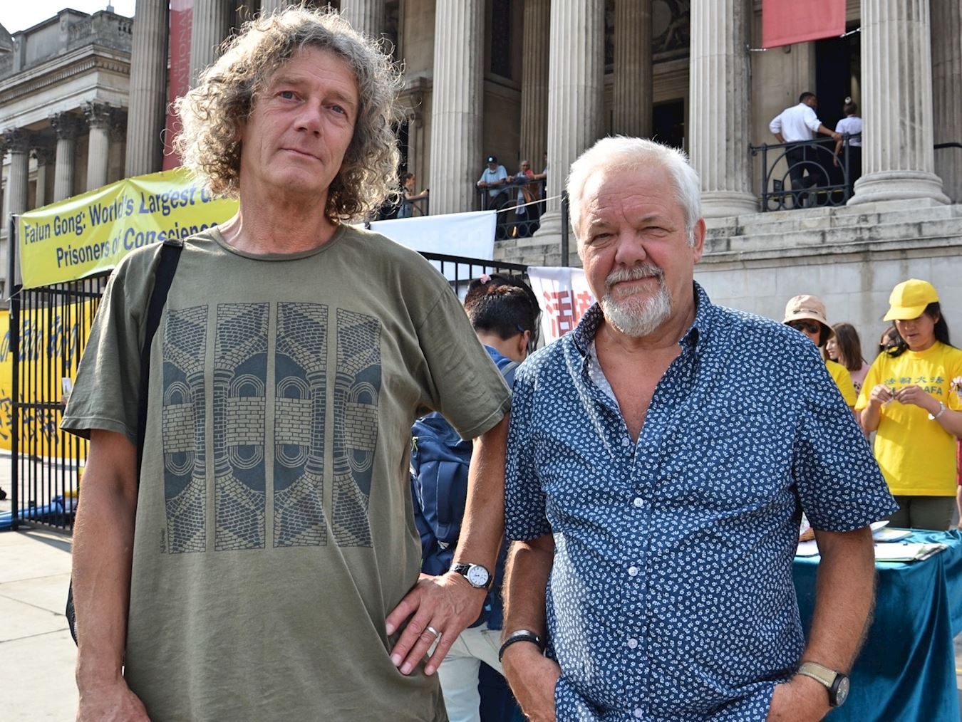 来自英国南部海岸的退休建筑师斯迪文(Steven)和友人马丁(Martin)在签名支持法轮功学员反迫害后表示,人们应该享有信仰自由、言论自由,不应该受到迫害。而且,法轮功学员信仰的是真善忍,要求他们放弃没有道理。